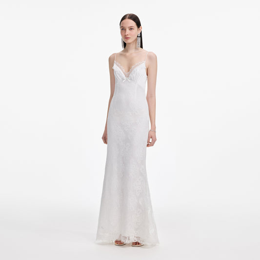 34% İndirimBeyaz Askılı Çiçek Desenli Dantel Uzun Elbise