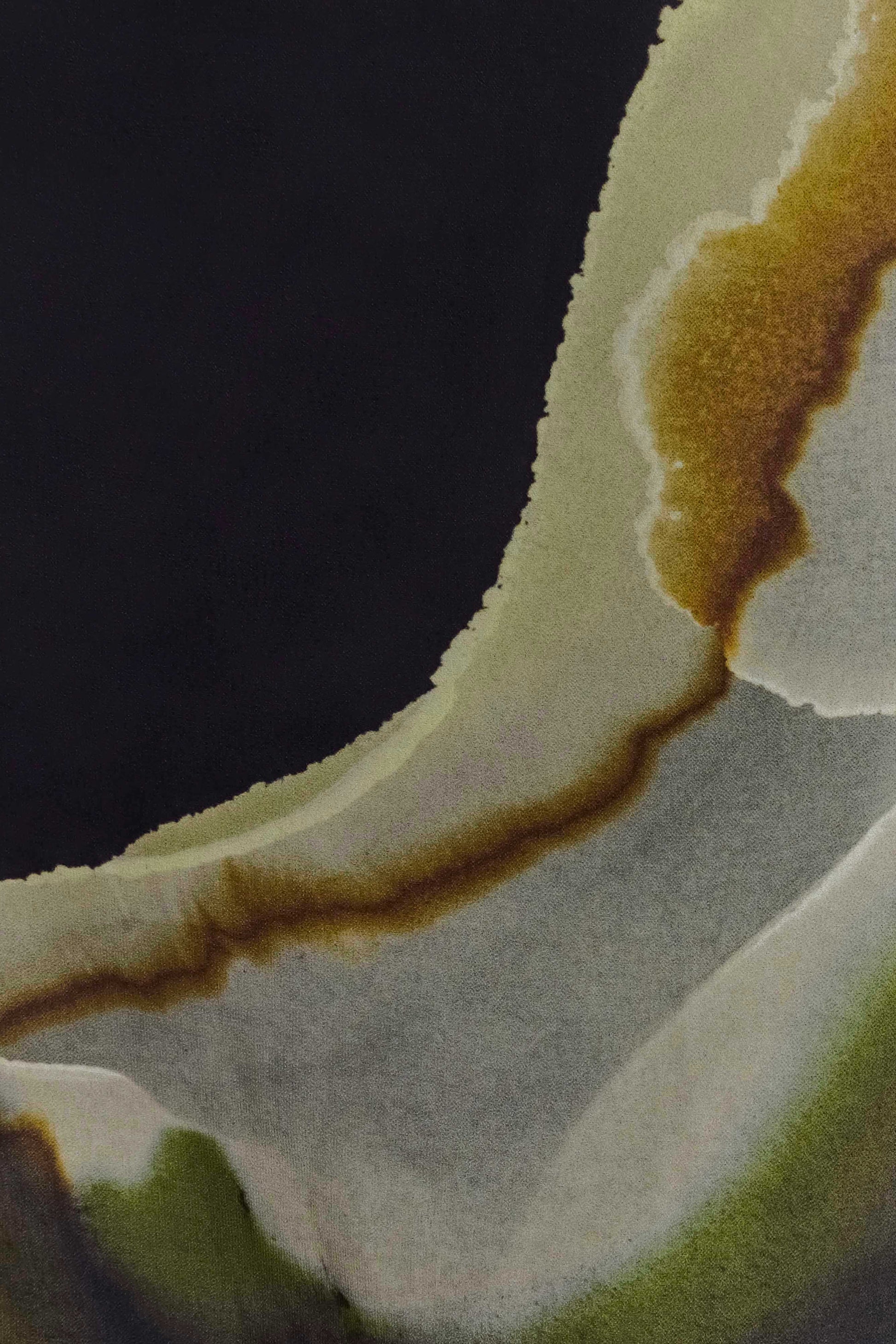 Amaya Straplez Şifon Uzun Elbise - Yeşil Akışkan Rüya Desenli