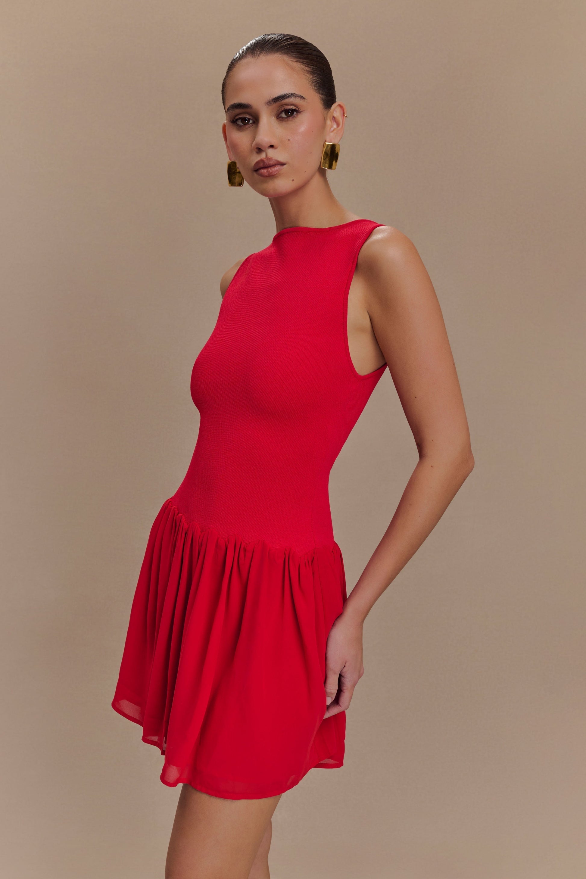 Ashleigh Örgü Ve Şifon Mini Elbise - Kırmızı