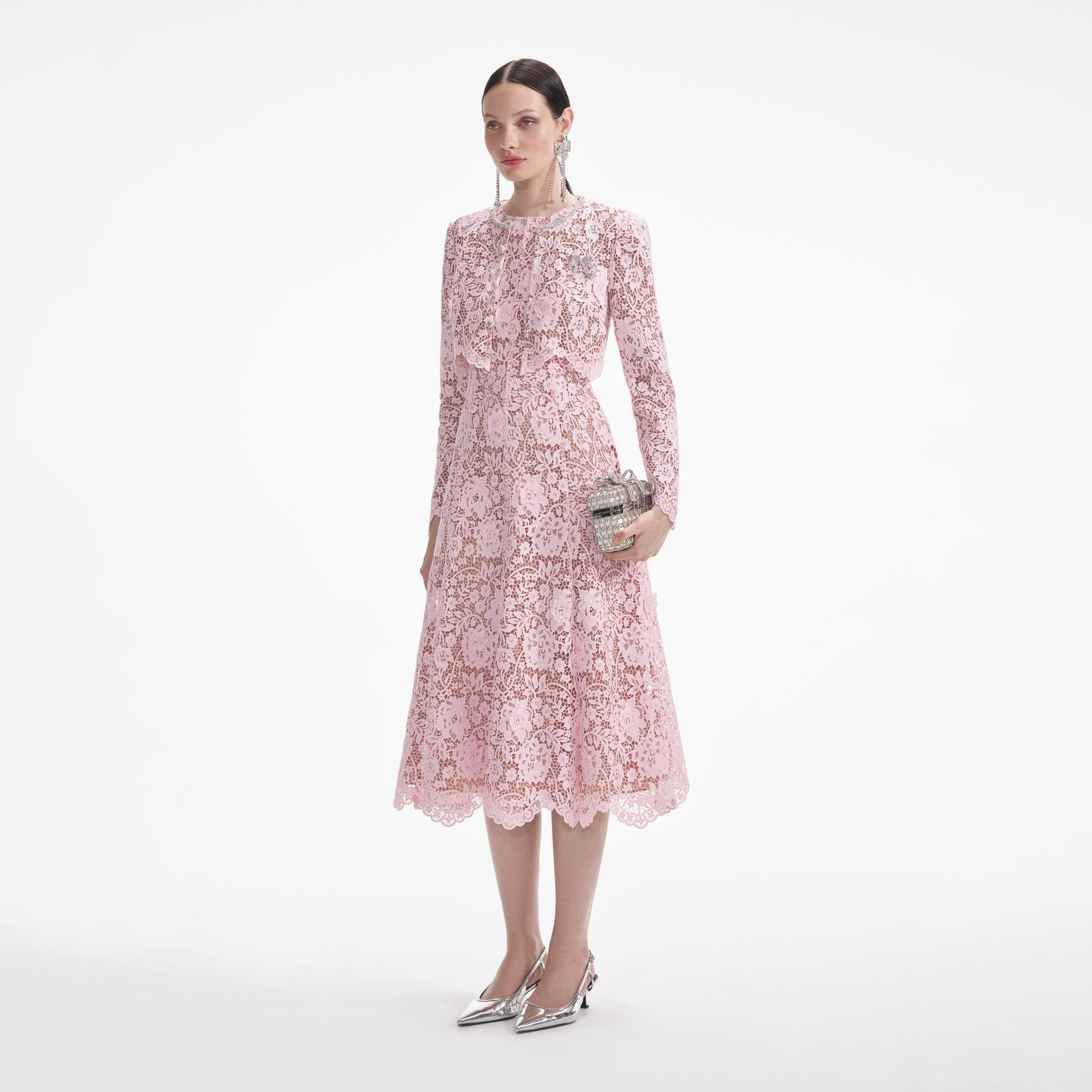 Ceketler eşit yaratılmaz ve bu ceket — pembe çiçekli danteli, diamanté süslemeleri ve kısa, dalgalı ucu ile — bunun en iyi örneğidir. Bir sonraki davetinizde, uyumlu elbisemizle kombinleyin.