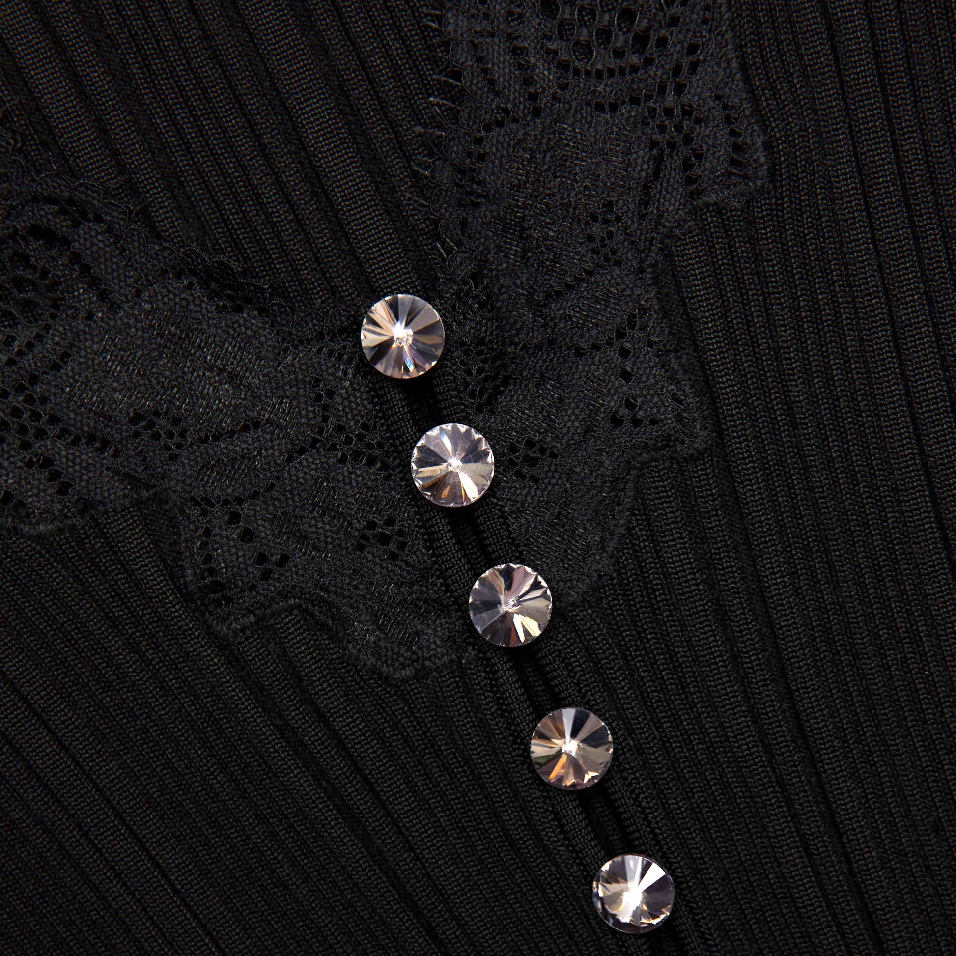 Yeni gardırop vazgenizle tanışın: Bu fitilli triko üst, derin V yakası etrafında dantel detaylar ve diamanté düğmelerle süslenmiştir. Akşam yemeği için kot ile kombinleyin veya gece dışarı çıkarken mikro şort ve topuklularla tamamlayın.