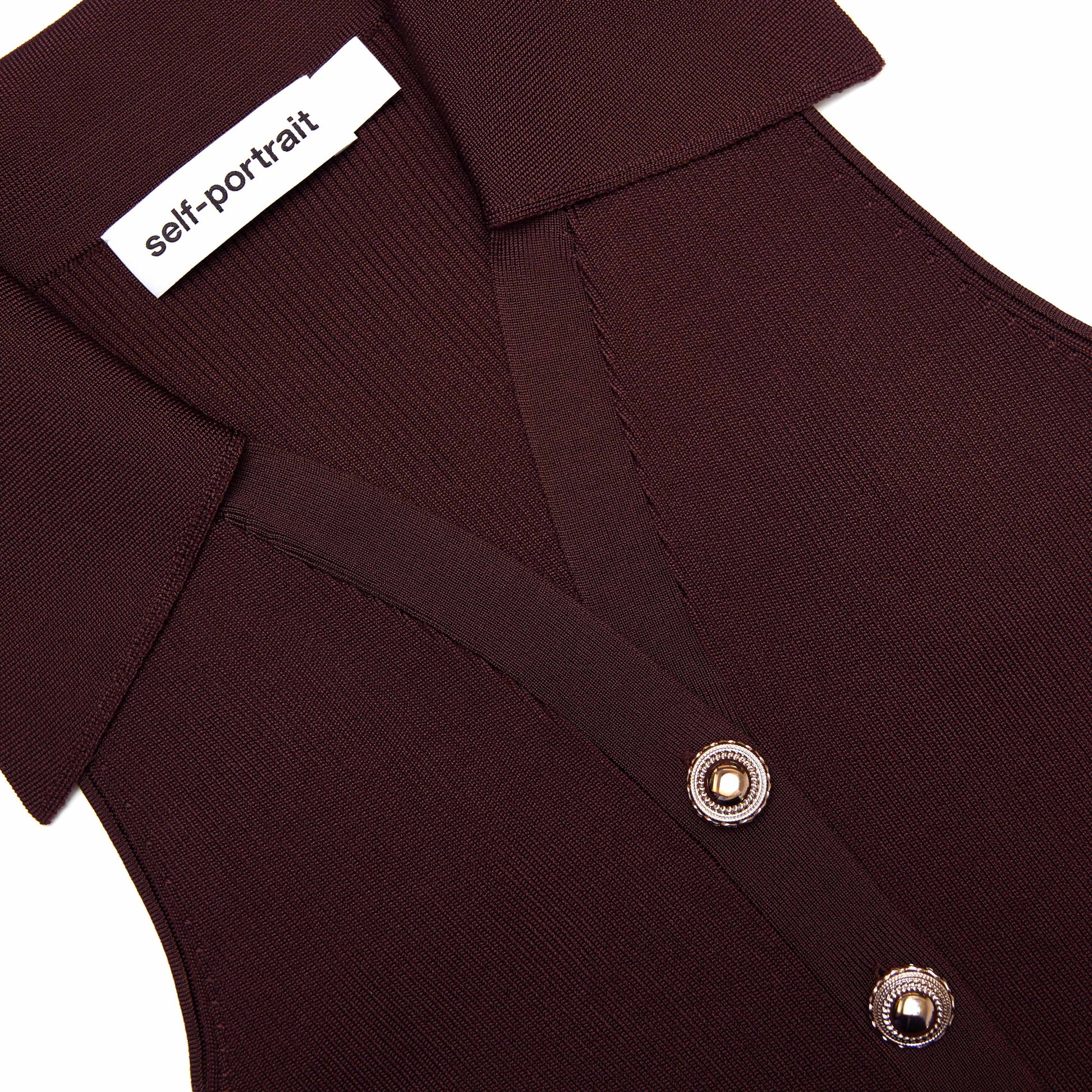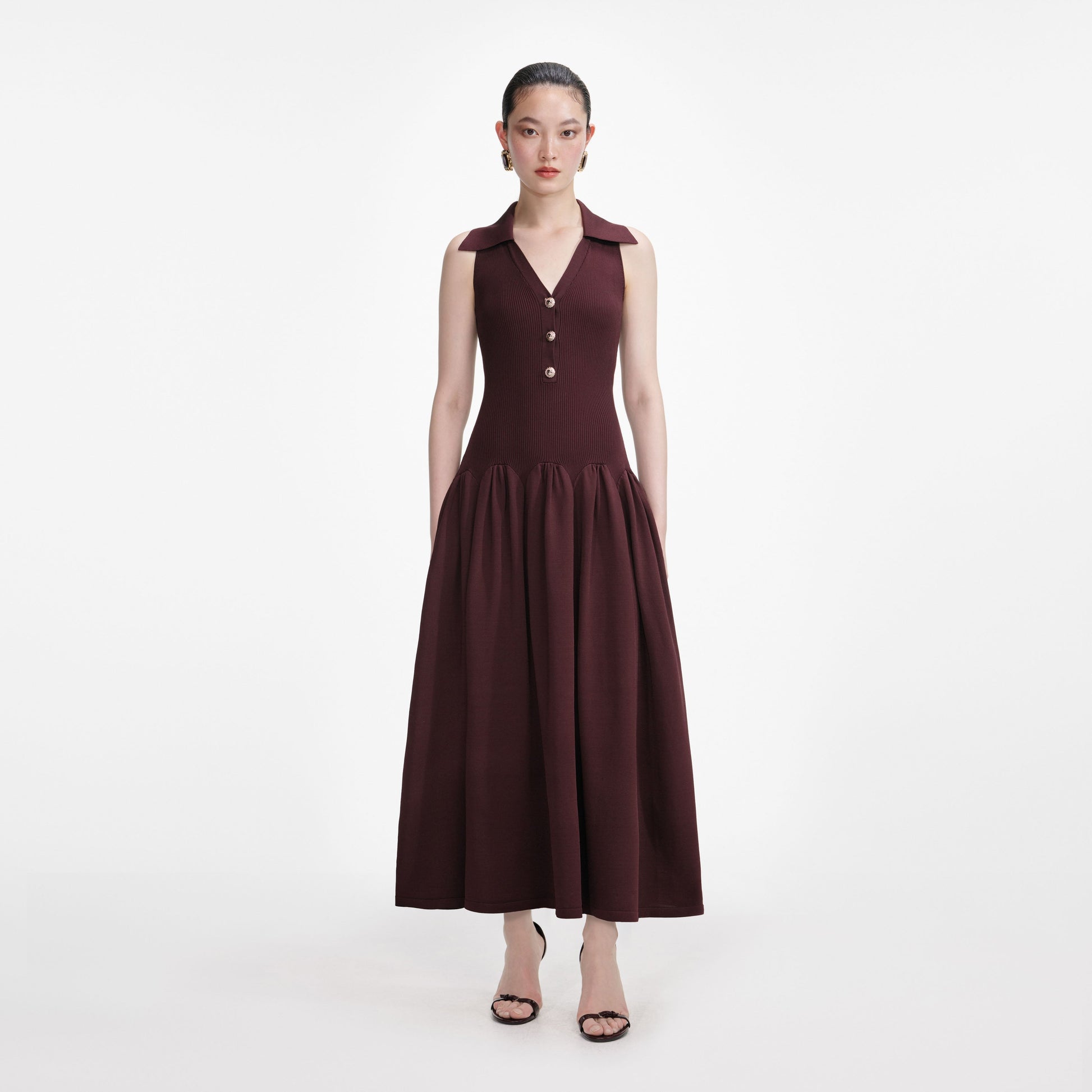 Kolaylık, şekillendirici viskon fitilli örgüden kesilmiş bu kahverengi midi elbise sayesinde gelir. Yaka detaylı kolsuz üst kısmı, formu şık bir şekilde çerçeveler – bir sonraki tatil için sandaletlerle kombinleyin.