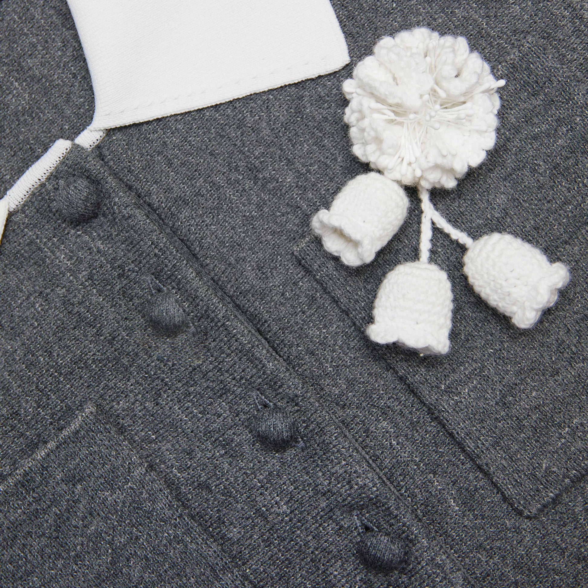 Gri Tığ İşi Çiçekli Yakalı Örgü Mini Elbise