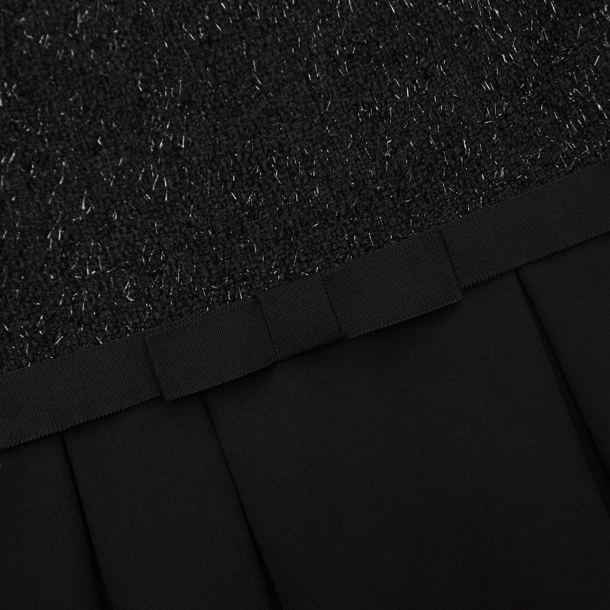 Bu zamansız elbise, oturmuş bouclé bir üst kısımla krepe etek boyunca tam hacmi birleştirir. Herhangi bir parti görünümü için kusursuz bir parça, klasik bir cazibe için platformlar ve inci ile giyin.