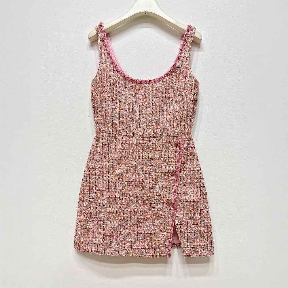 Klasik şıklığı ve modern konforu aynı anda deneyimlemek isteyenler için tasarlandı. Tüvit kumaşı, zarif gizli düğmeli patlet detayı ve arka fermuarıyla dikkat çeken bu pembe elbise, mükemmel bir görünüm sunar. İç astarı ve kullanışlı cepleriyle pratik bir kullanım sağlarken, yüksek bel tasarımıyla vücut hatlarınızı zarifçe vurgular. Günlük ve özel gün kombinlerinize zarif bir dokunuş katacak.