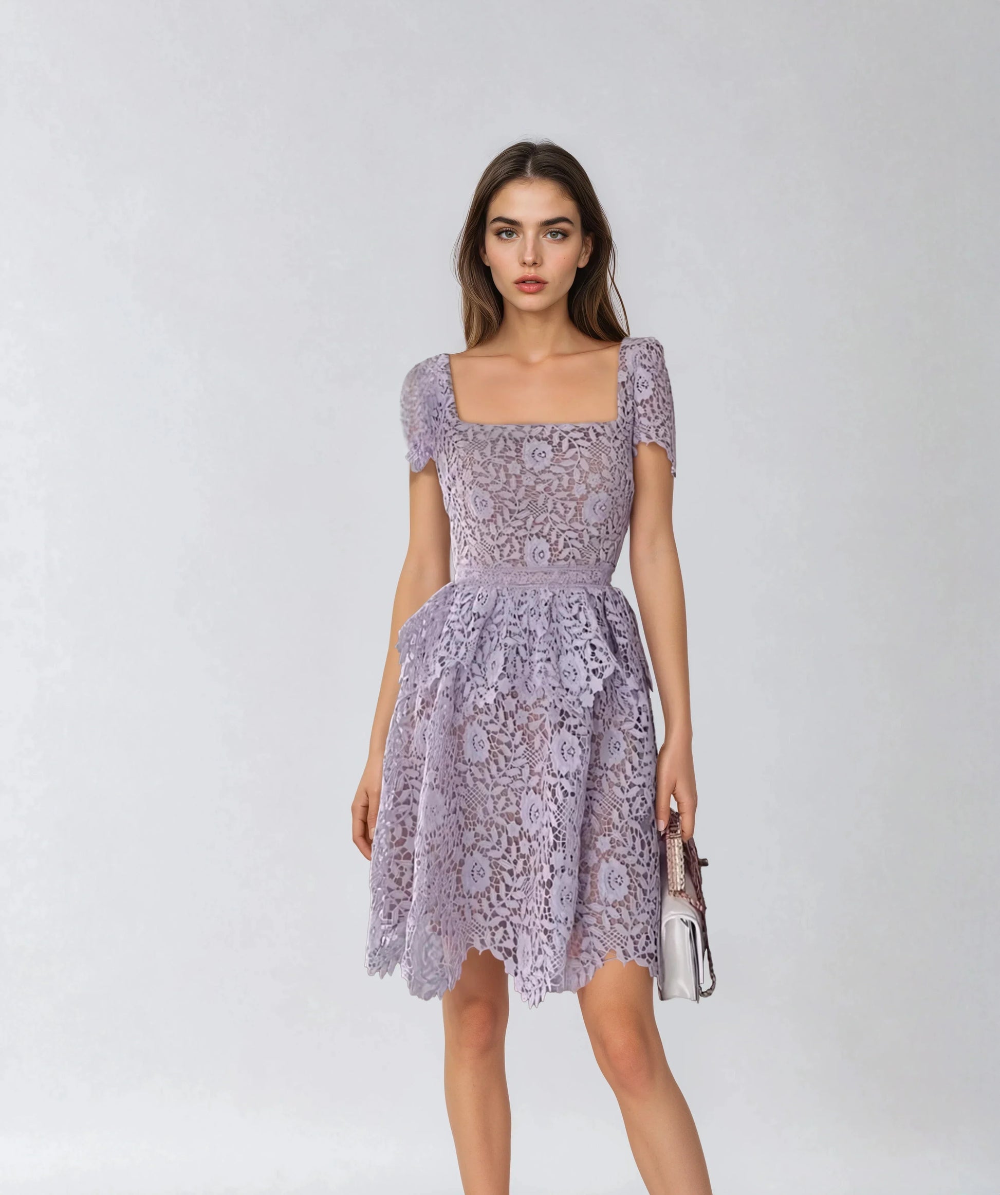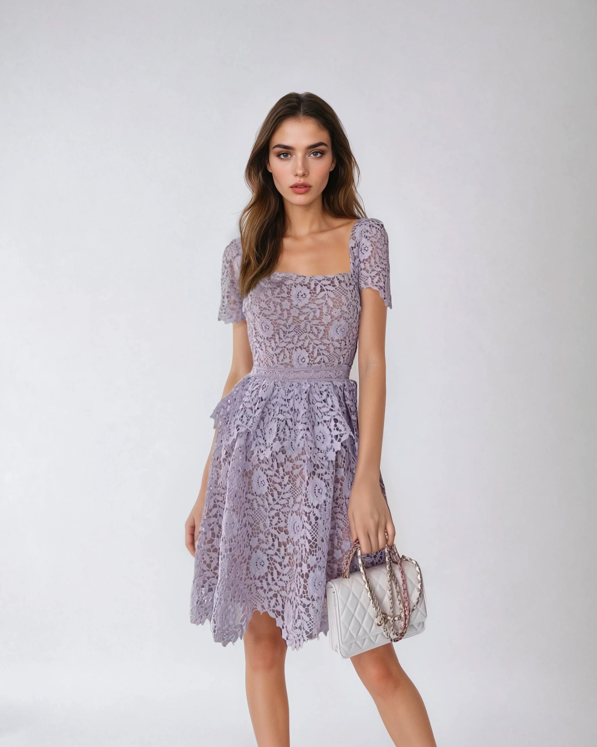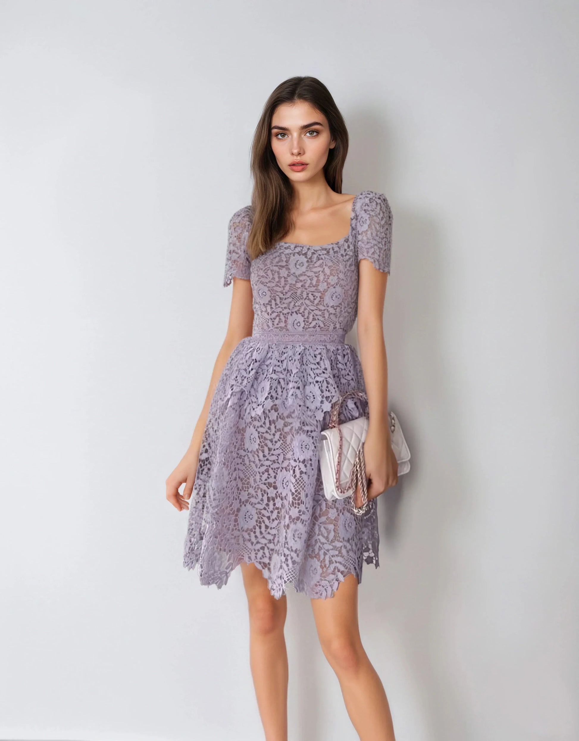 Şıklığı ve romantizmi aynı anda deneyimlemek isteyenler için tasarlandı. Özel suda çözünen dantel kumaşı, iç astarı ve şık arka fermuarıyla dikkat çeken bu mor elbise, zarif bir görünüm sunar. Yüksek bel tasarımıyla vücut hatlarınızı mükemmelleştirir, özel günleriniz için büyüleyici ve unutulmaz bir seçim olacaktır.