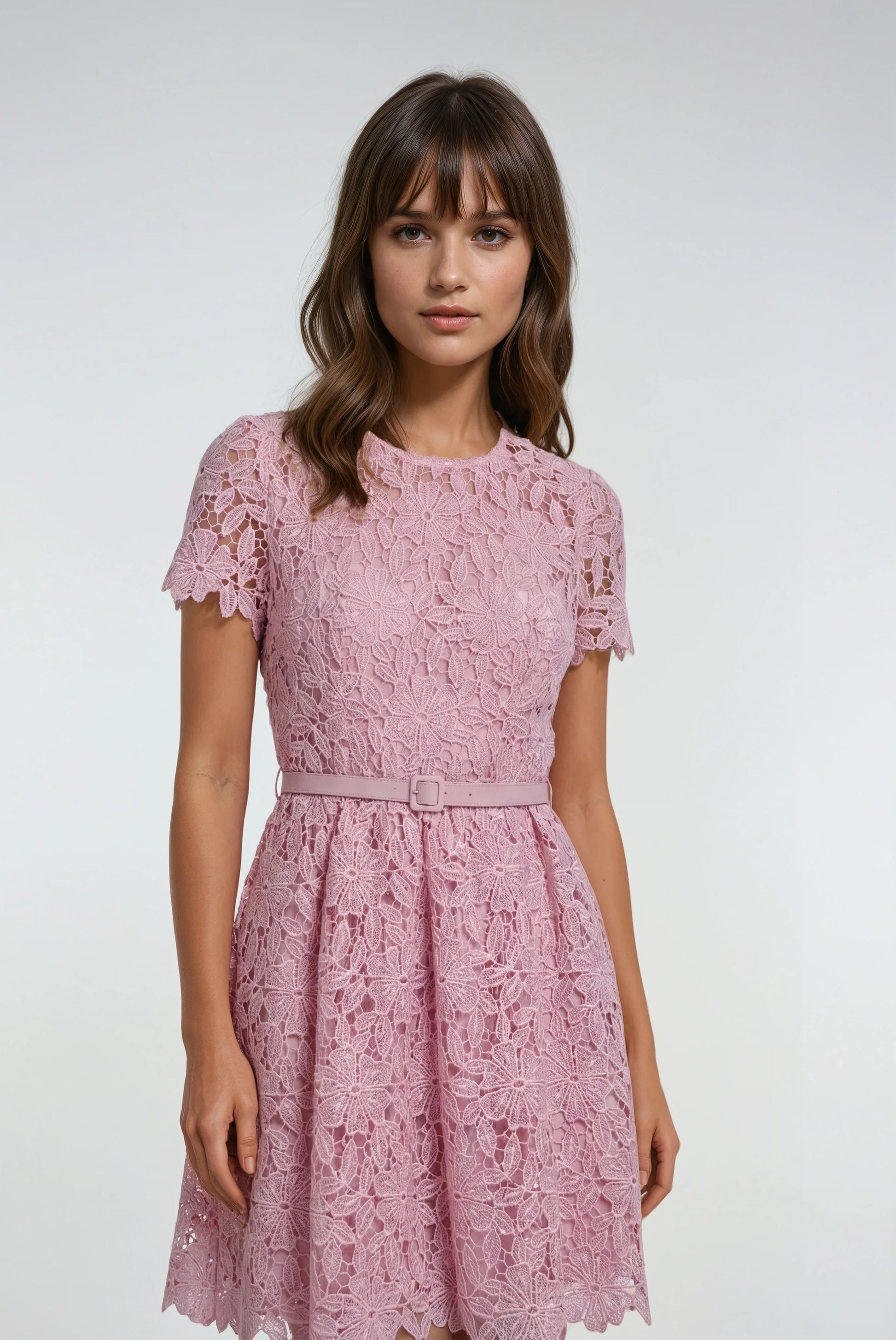 Bu mini elbise, zarif dantel işlemeleri romantik pembe rengiyle birleştiriyor. Vücudu saran kesimi ve yüksek bel tasarımıyla şık ve genç bir görünüm sunar. Önden fermuar, kullanışlı cepler ve uyumunu tamamlayan kemeri ile hem pratik hem de tarzınıza göre şekillendirilebilir bir tasarımdır. Astarlı yapısı ve göğüs desteği ile konforlu bir giyim deneyimi sağlar. Önemli Not: Bu ürün profesyonel bir sertifikaya sahip değildir.