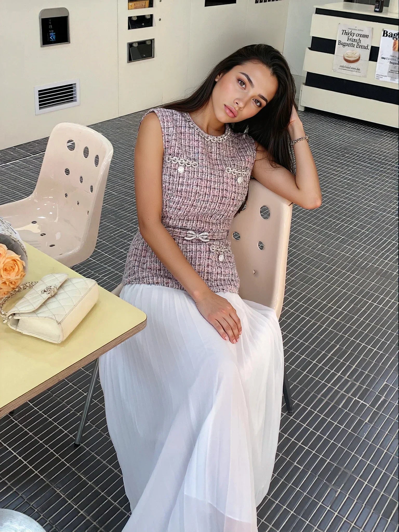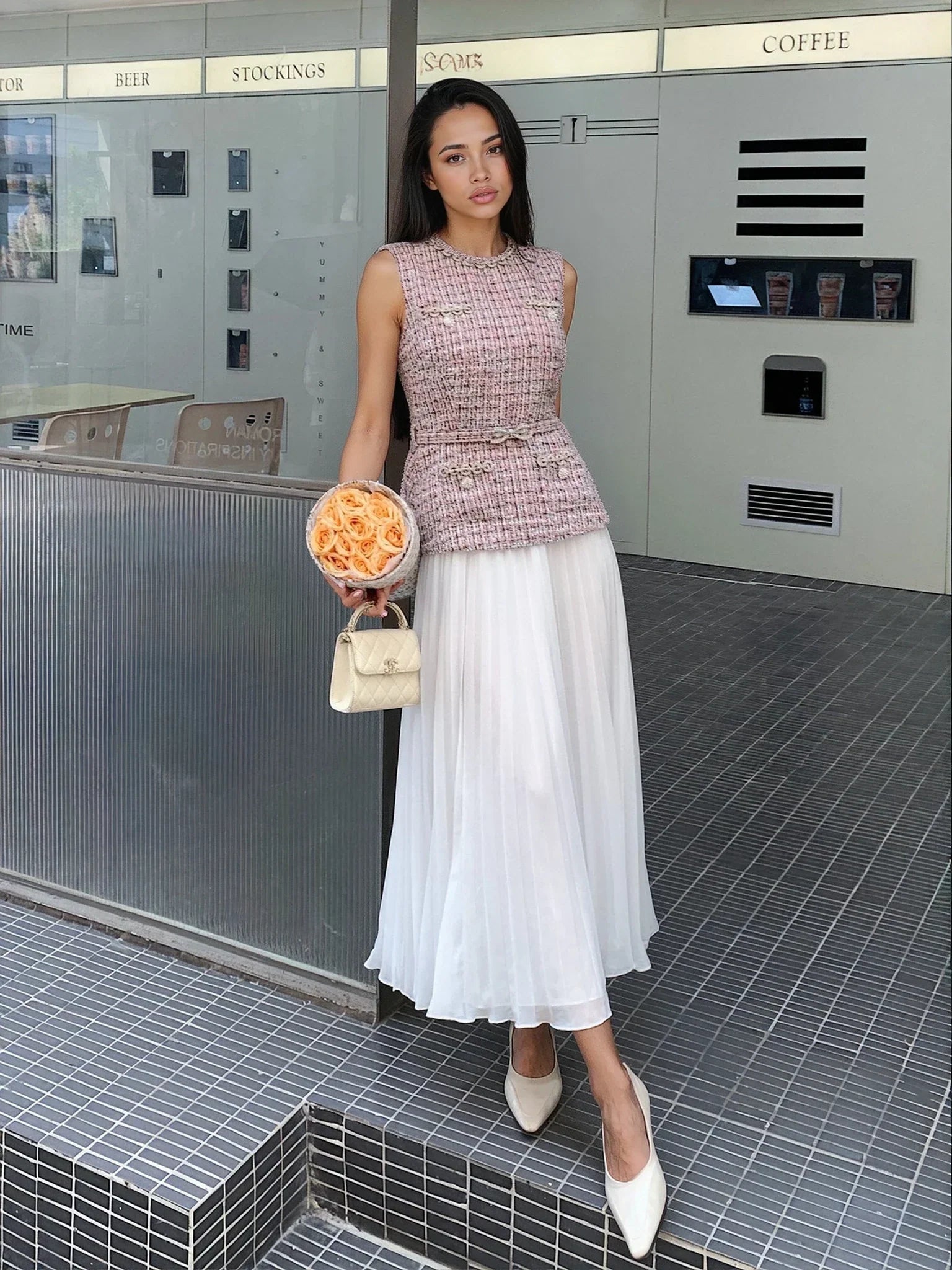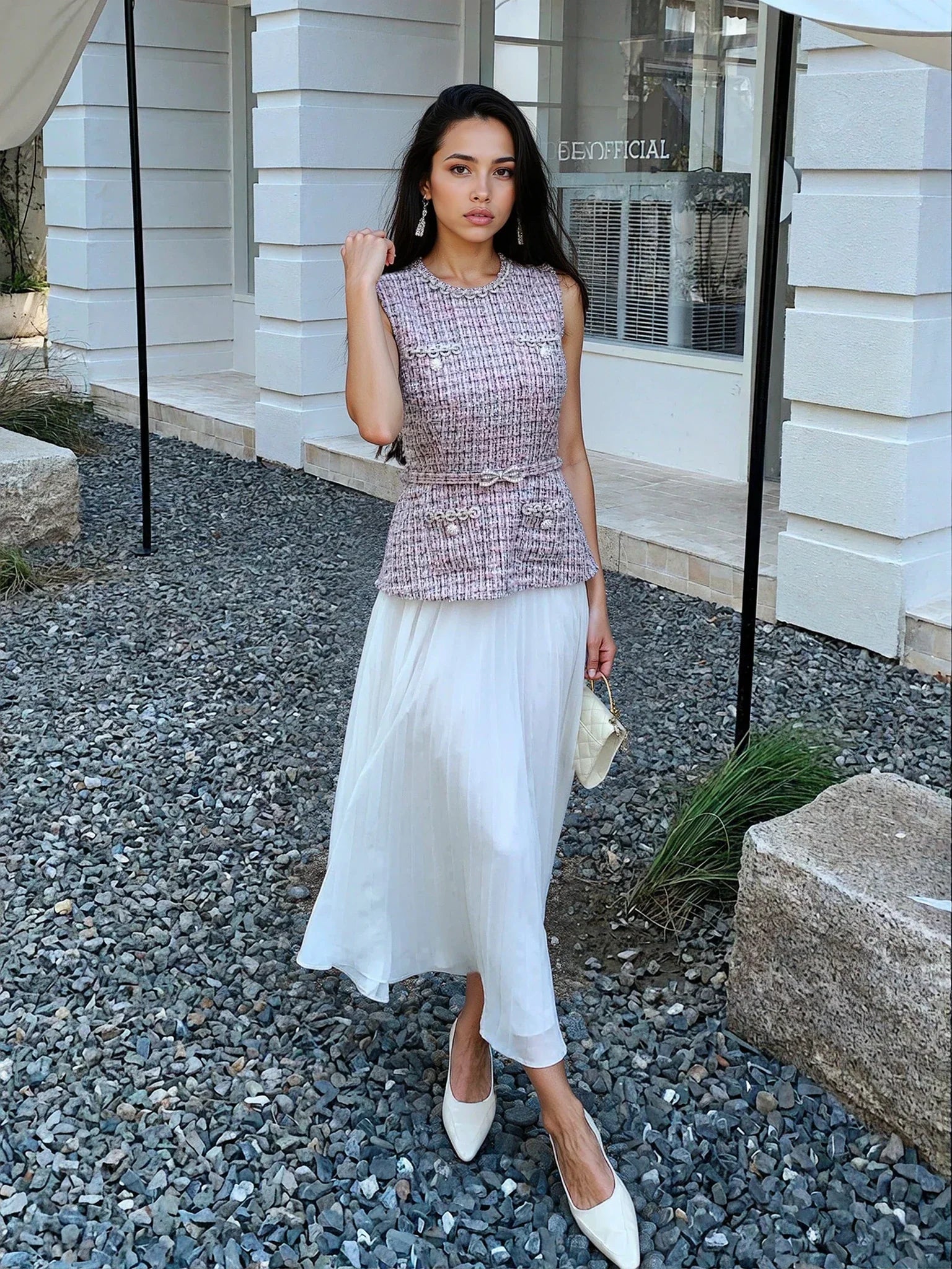 Zarif pembe-beyaz karışımı renkleri ve tüvit-şifon dokusuyla romantik bir tarz sunan bu elbise, şıklığı ve hafifliği bir araya getiriyor. Yüksek bel tasarımı ve göğüs bölgesindeki esnek yapısıyla zarif bir görünüm vadeden model, kemer detayı, cepleri, arka fermuarı ve astarlı yapısı ile konforlu bir giyim deneyimi sağlıyor. Özel günleriniz için unutulmaz bir seçim.