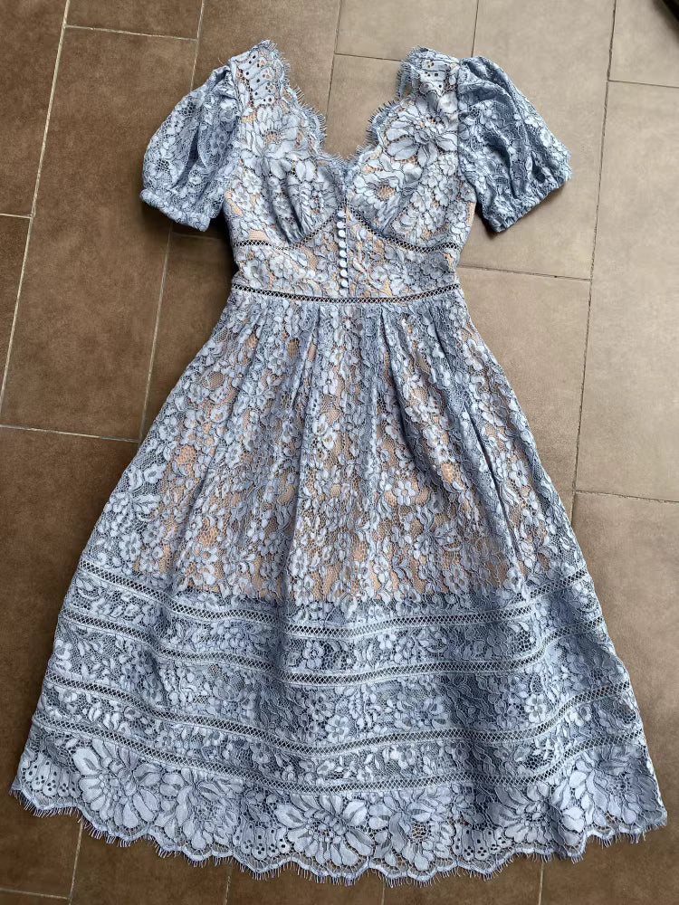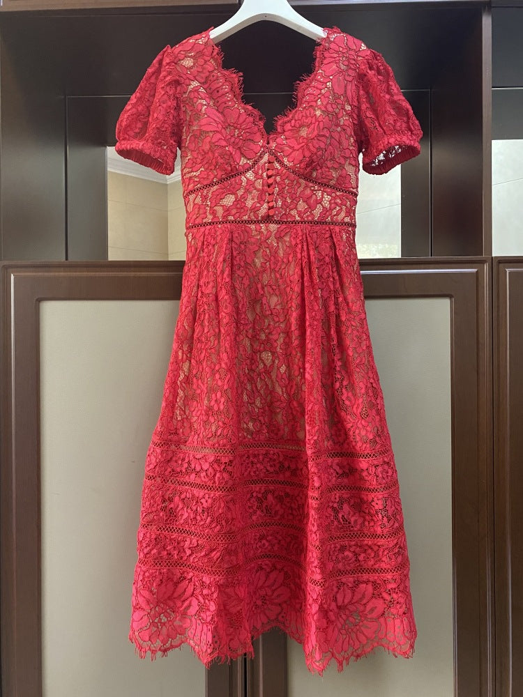 Kırmızı/Mavi Dantel Elbise