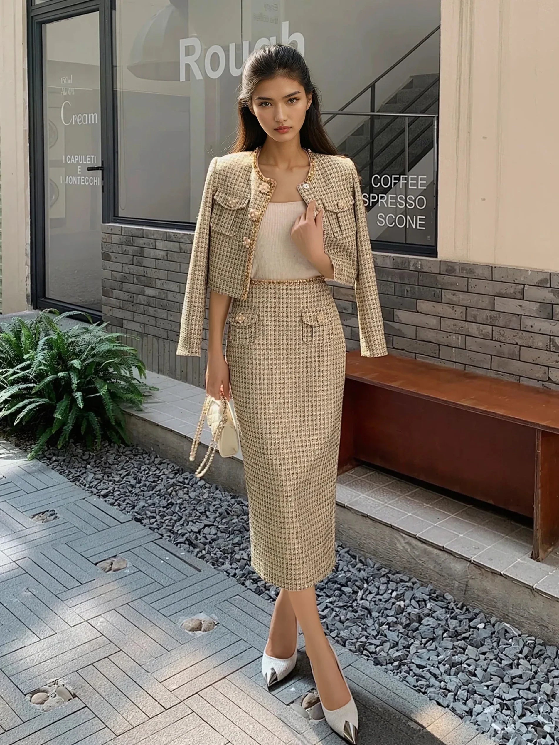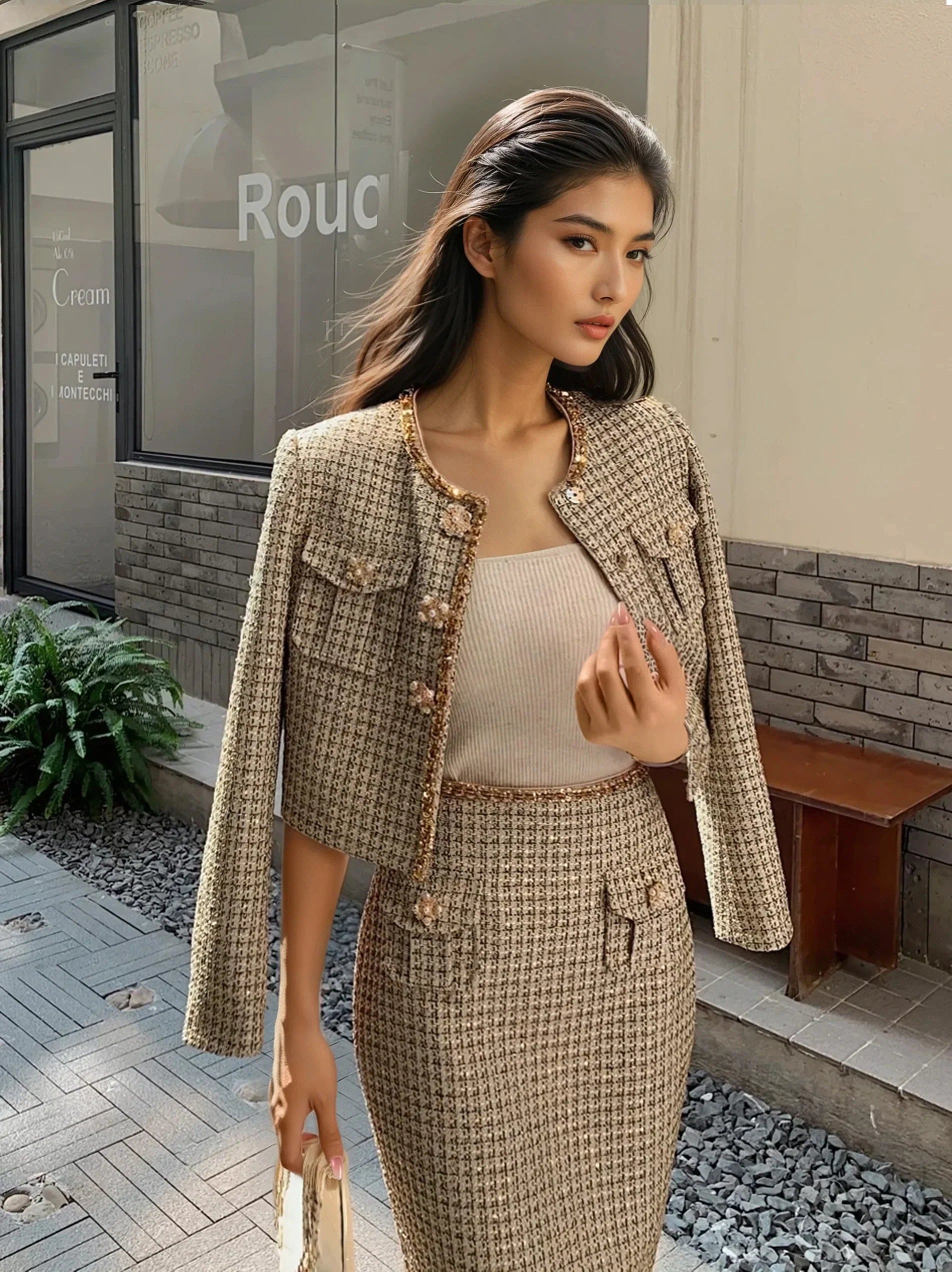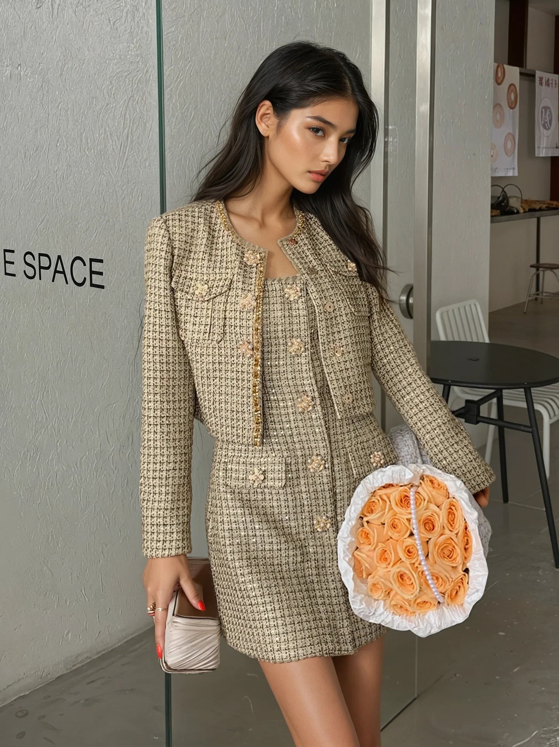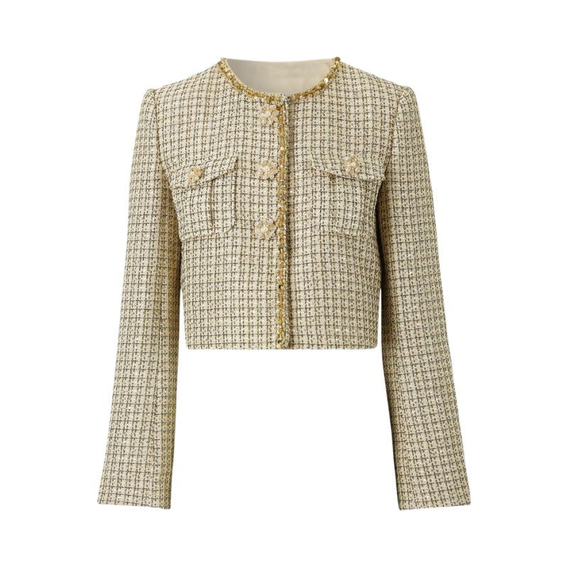 Işıltılı altın rengi ve göz alıcı payetli tüvit kumaşıyla dikkat çeken bu ceket, özel günler ve gece davetleri için mükemmel bir seçim. Çıtçıtlı ön kısmı, şık cepleri ve iç astarı ile hem şık hem de işlevsel bir tasarıma sahiptir. Üzerine farklı elbiseler ve bluzlarla kolayca kombinlenebilir, şıklığınızı tamamlayacak parıltılı bir dokunuş katıyor. Ceket biraz bol kesimlidir.