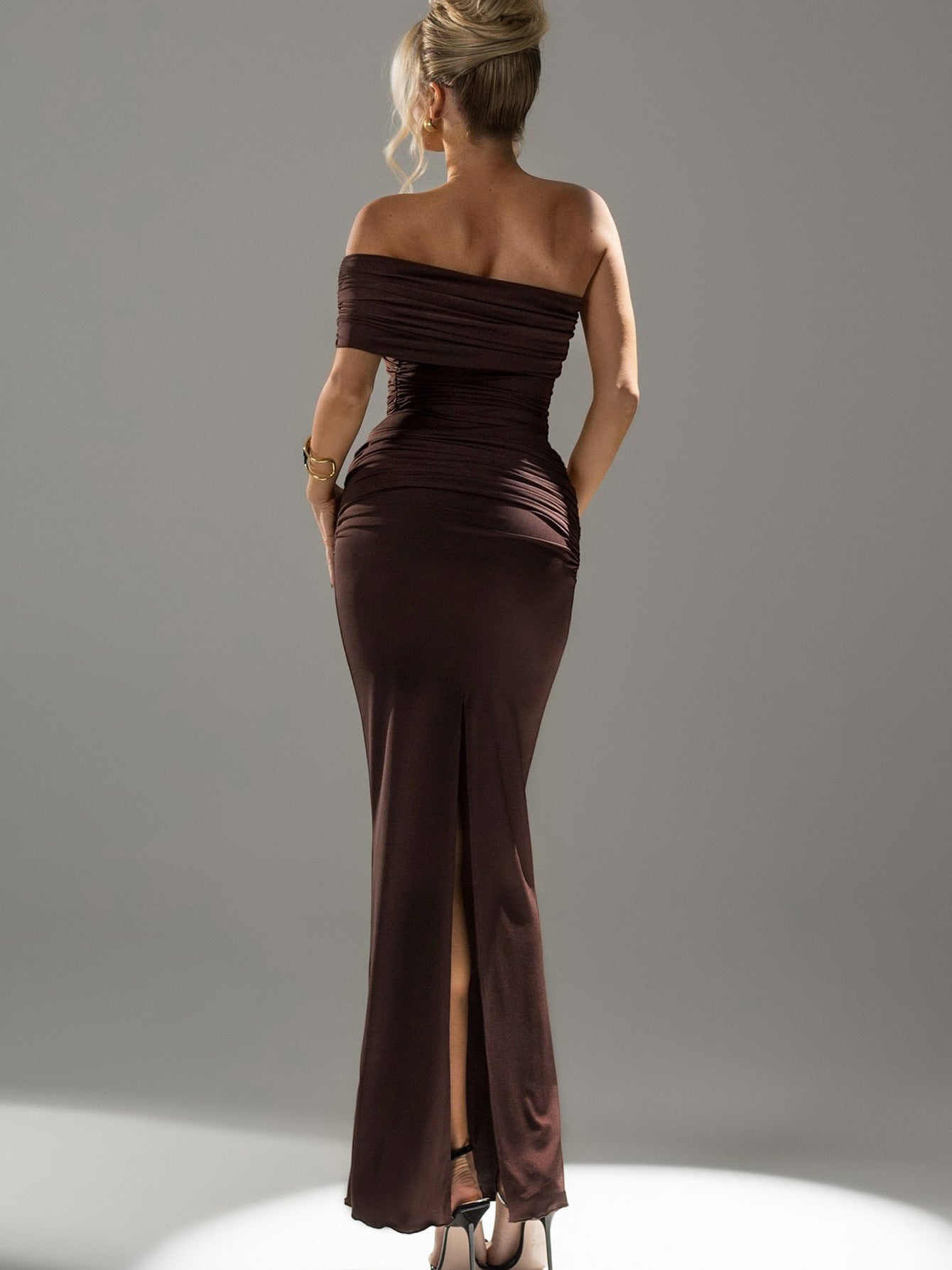 Sırtı Açık Yırtmaçlı İnce Elbise