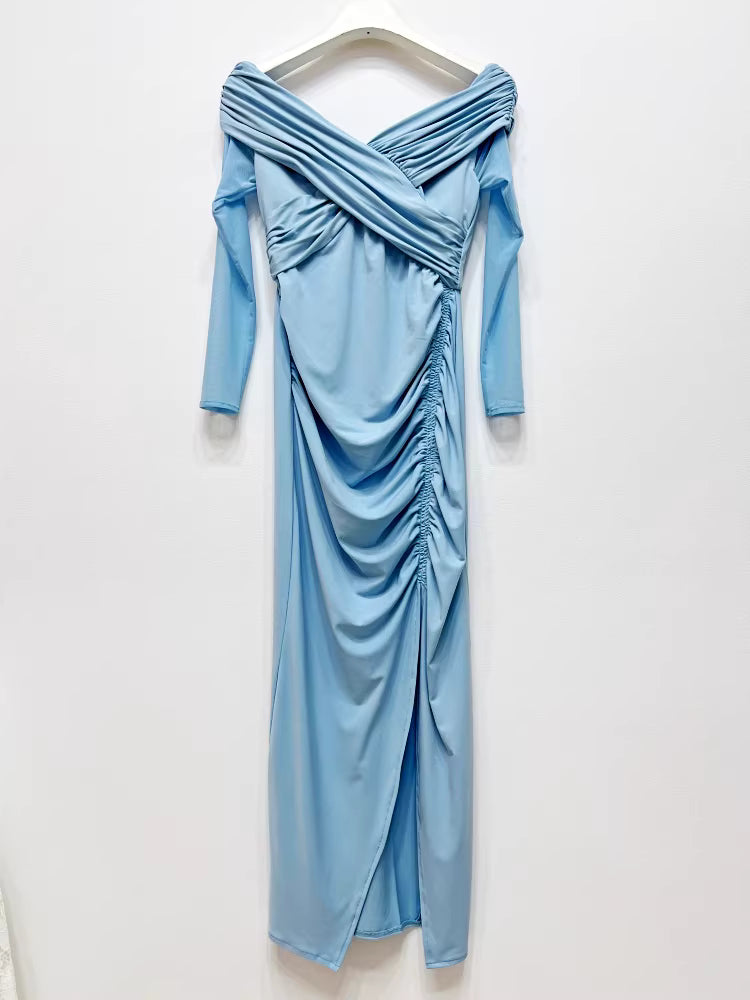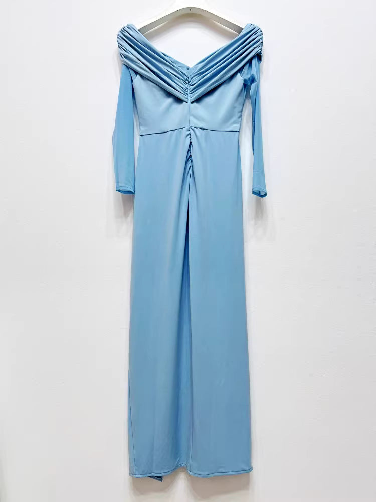 Buz Mavisi Uzun Elbise