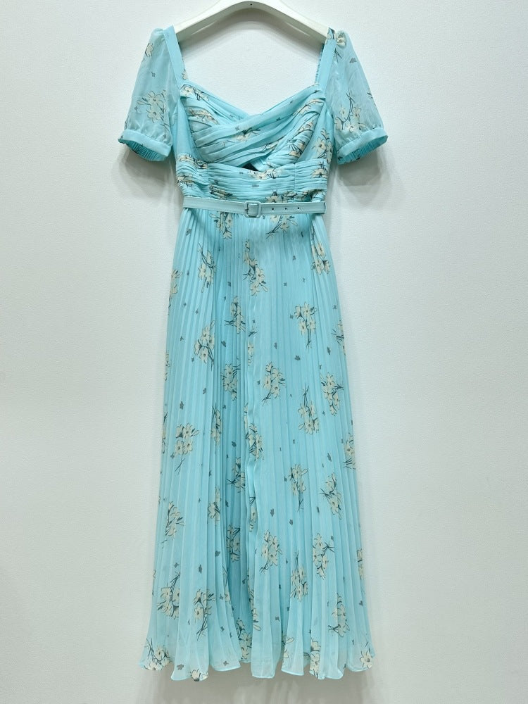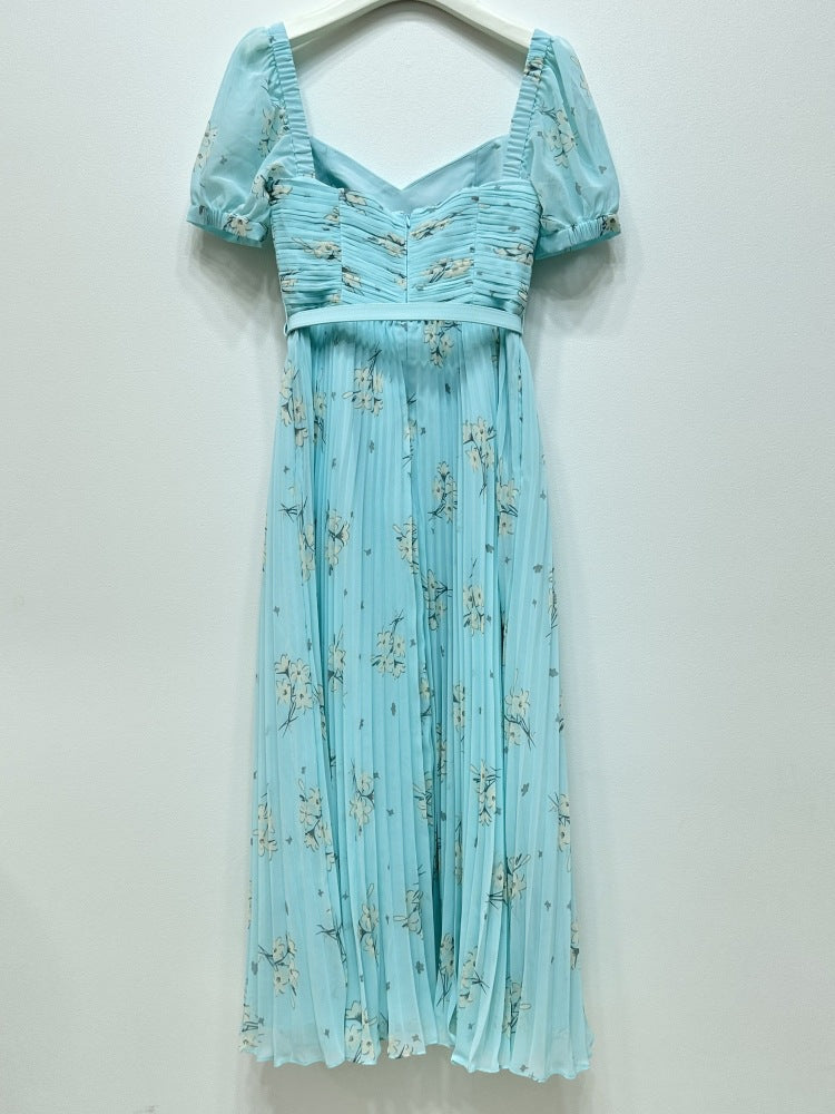 Yeşil Baskılı Şifon Elbise