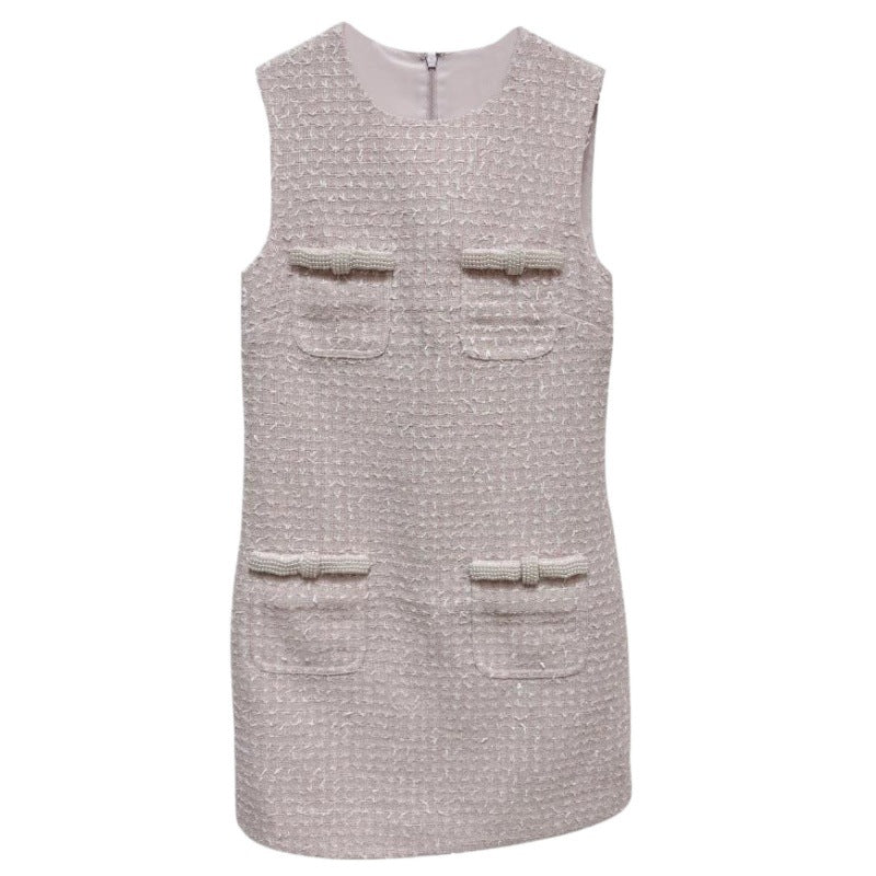 Pembe İnci Tüvit Kolsuz Elbise