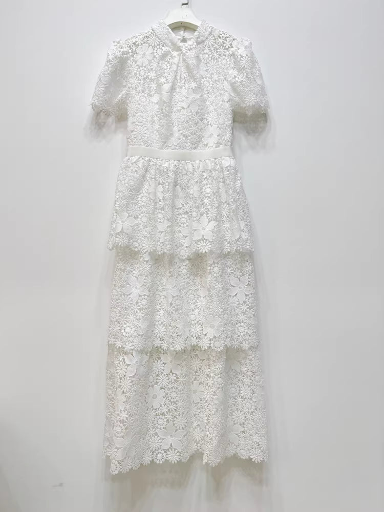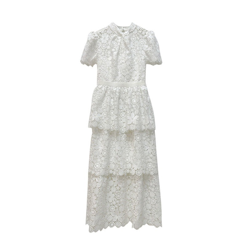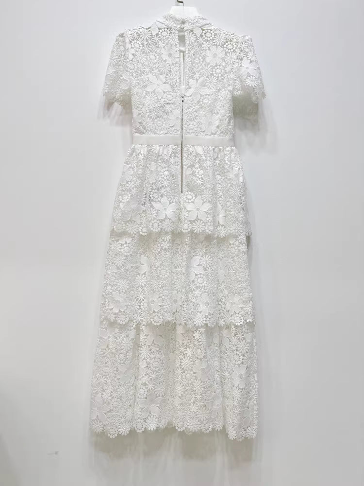 Ağır Dantel Süslemeli Beyaz Elbise