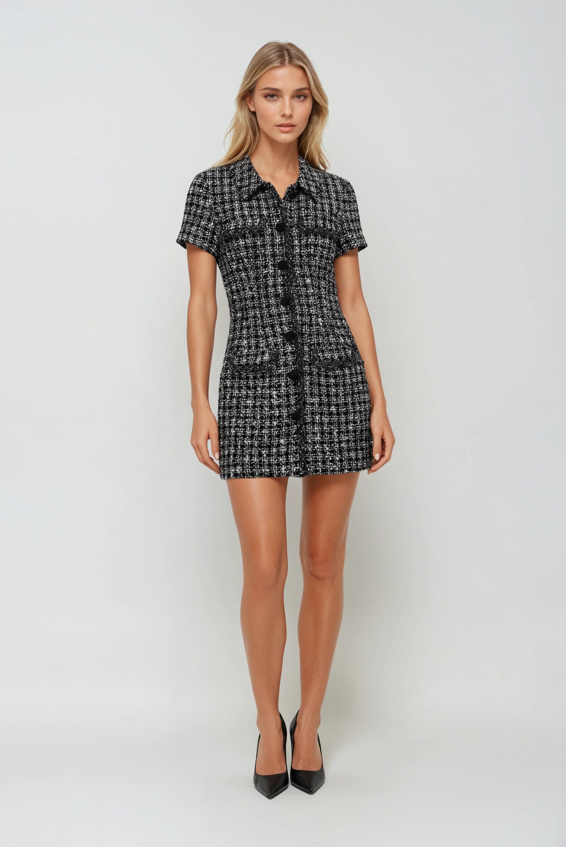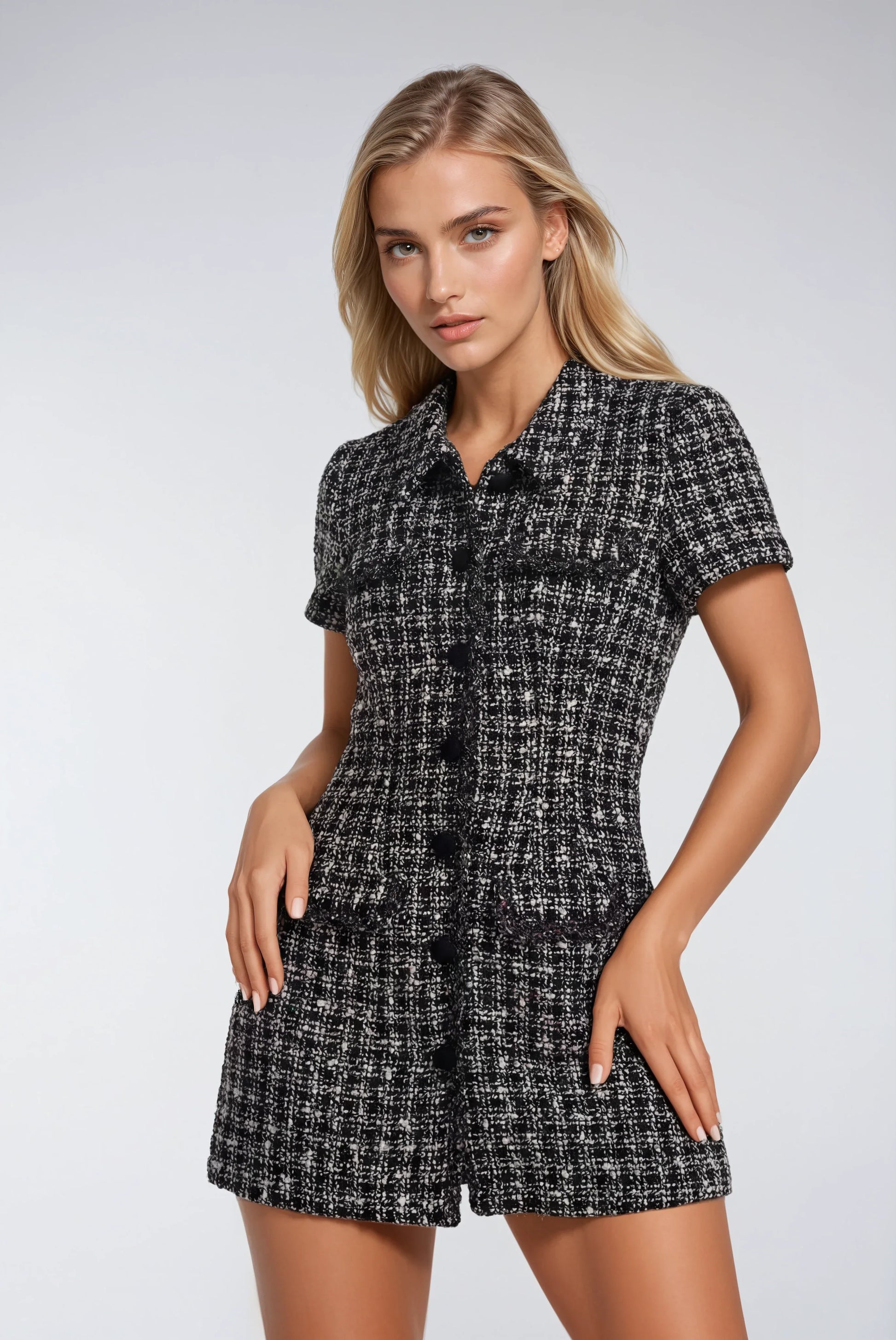 Bu mini elbise, karışık renk dokulu tüvit kumaşı ve gizli düğme detayıyla şık ve modern bir görünüm sunuyor. Vücudu saran kesimi ve yüksek bel tasarımıyla dengeli bir görünüm sağlar. Cepleri ve astarlı yapısı hem pratik hem de konforludur. Siyahın derin tonuyla her tarza uyum sağlayacak klasik ve vazgeçilmez bir parçadır. Önemli Not: Bu ürün profesyonel bir kurum tarafından onaylanmamıştır.