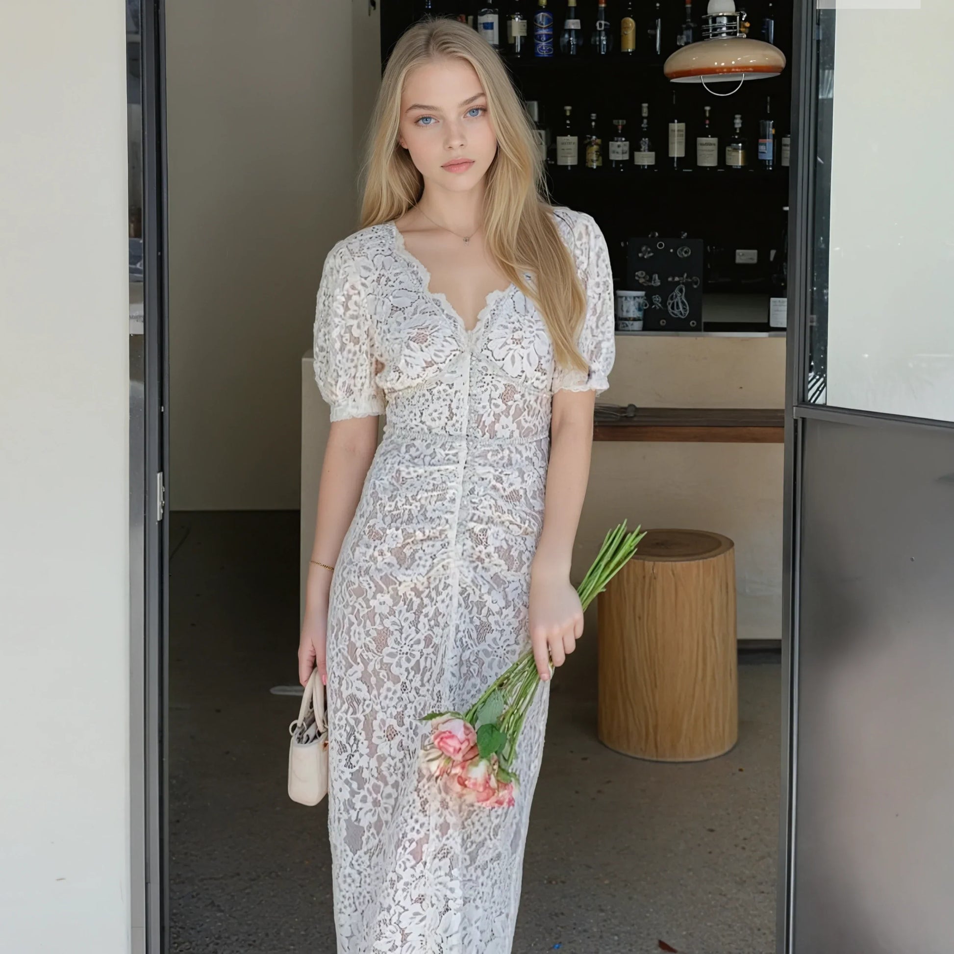 Bu fildişi dantel elbise, zarif kirpik dantel tasarımı ve şık ortadan fermuar detayıyla göz alıyor. İç askılı astarı ve yüksek bel tasarımıyla konforlu ve vücudu saran bir görünüm sunar. Hafif esnek ve dar kesimiyle şıklığı ön plana çıkaran bu elbise, özel günleriniz ve davetleriniz için zarif ve romantik bir seçimdir.
