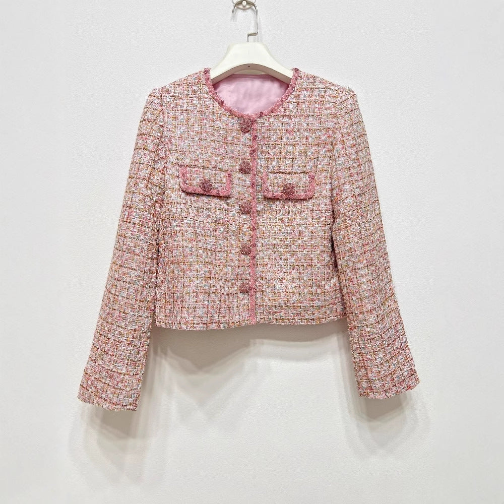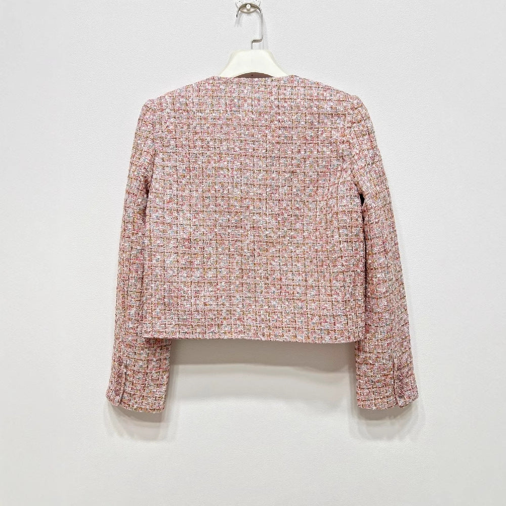 Klasik şıklığı ve modern detayları aynı anda deneyimlemek isteyenler için tasarlandı. Tüvit kumaşı, şık gizli düğmeli patlet detayı ve iç astarıyla dikkat çeken bu pembe ceket, zarif bir görünüm sunar. Kullanışlı cepleri ve dar kesimiyle vücudu sararak şık bir silüet oluşturur, ofis tarzınızdan özel gün kombinlerinize kadar her anınıza zarif bir dokunuş katacak.