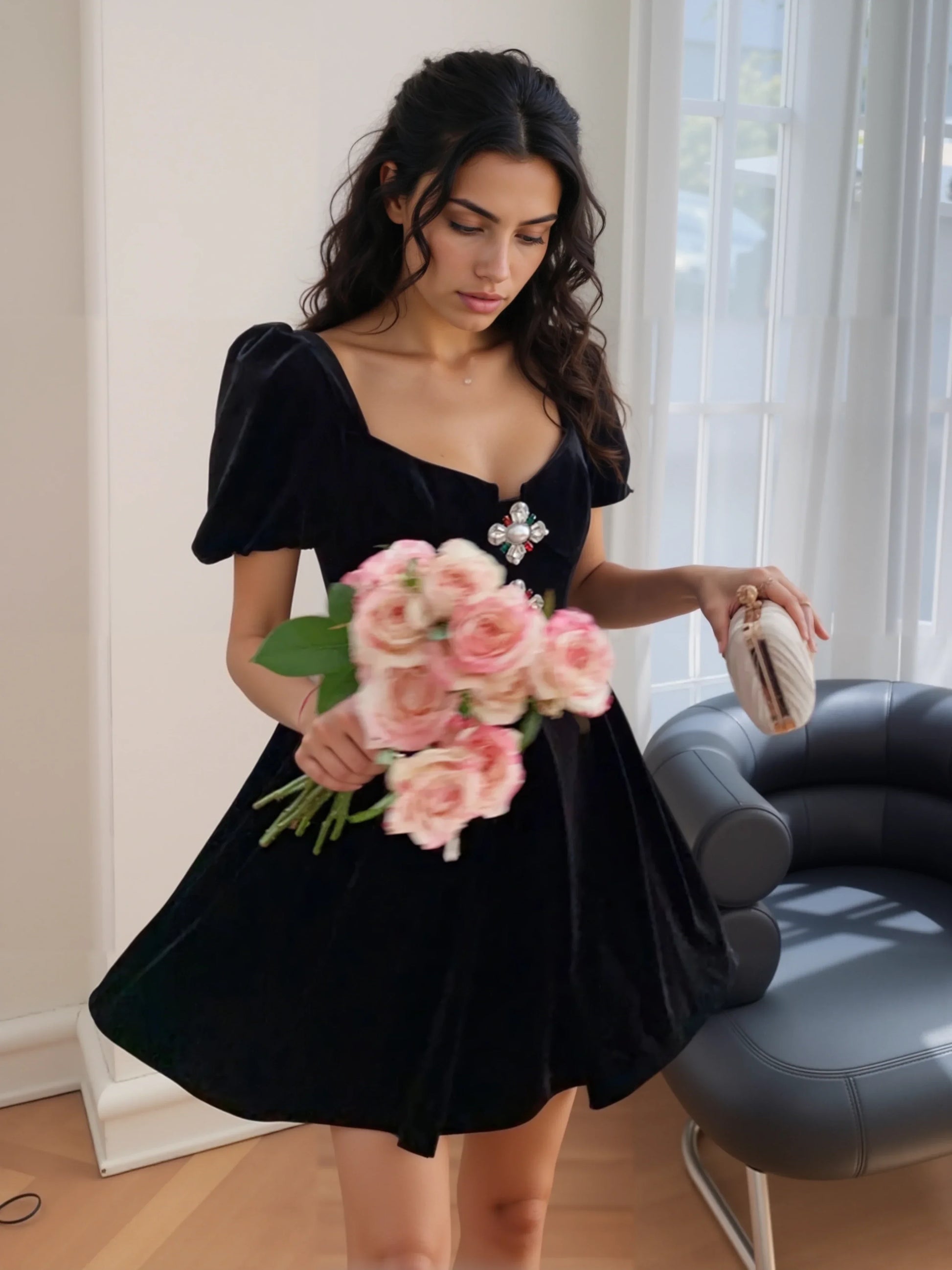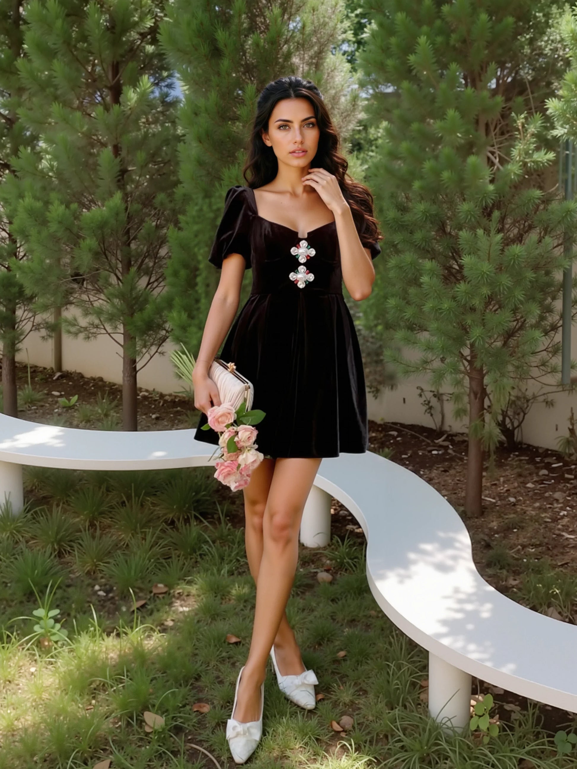 Cesur şıklığı ve konforu aynı anda deneyimlemek isteyenler için tasarlandı. Patchwork kadife kumaşı, iç astarı ve dikkat çekici çelik halkalı arka fermuarıyla öne çıkan bu siyah elbise, mükemmel bir görünüm sunar. Esnek yapısı ve yüksek bel tasarımıyla vücut hatlarınızı zarifçe vurgular, özel geceleriniz için unutulmaz ve fark yaratan bir seçim olacaktır.