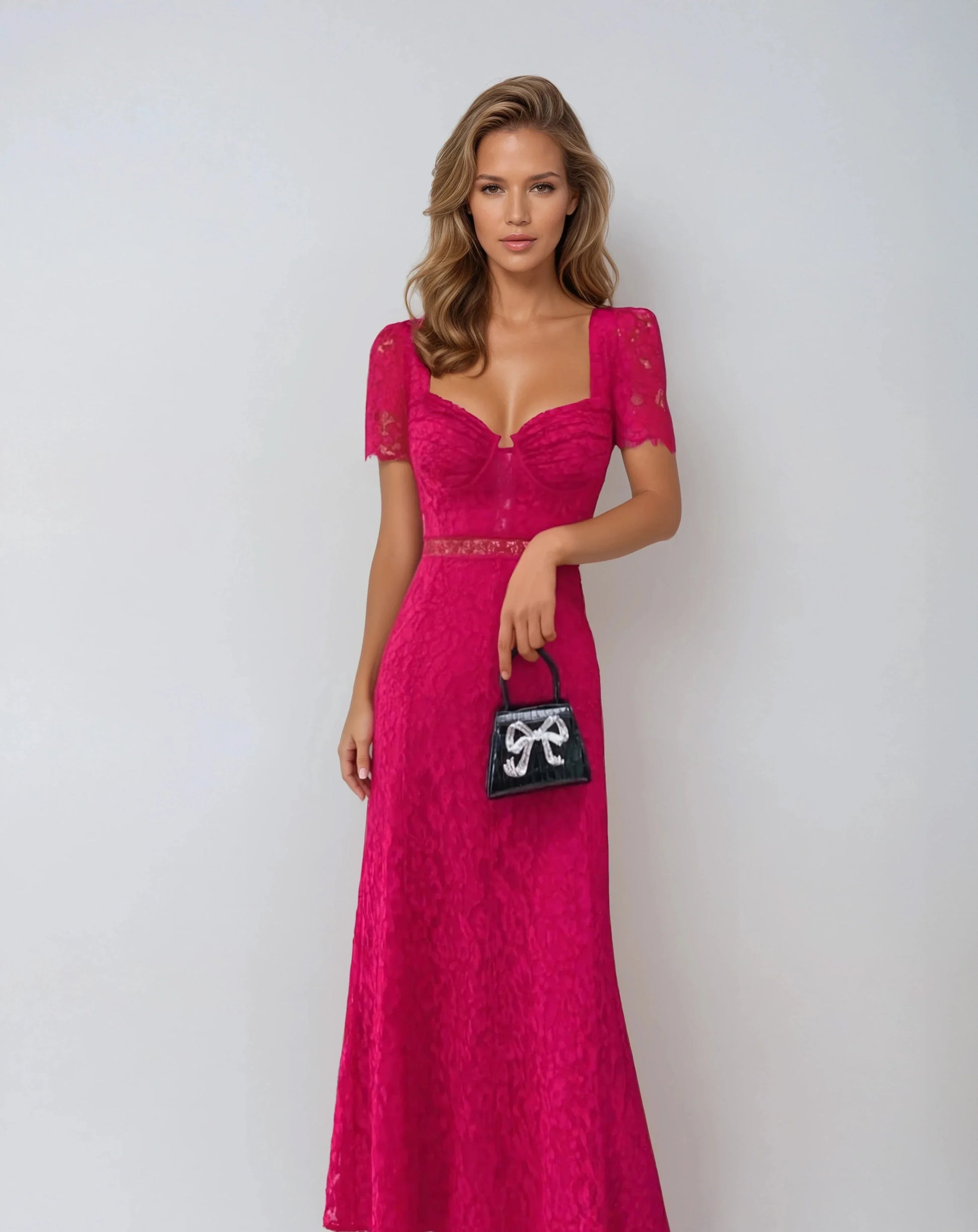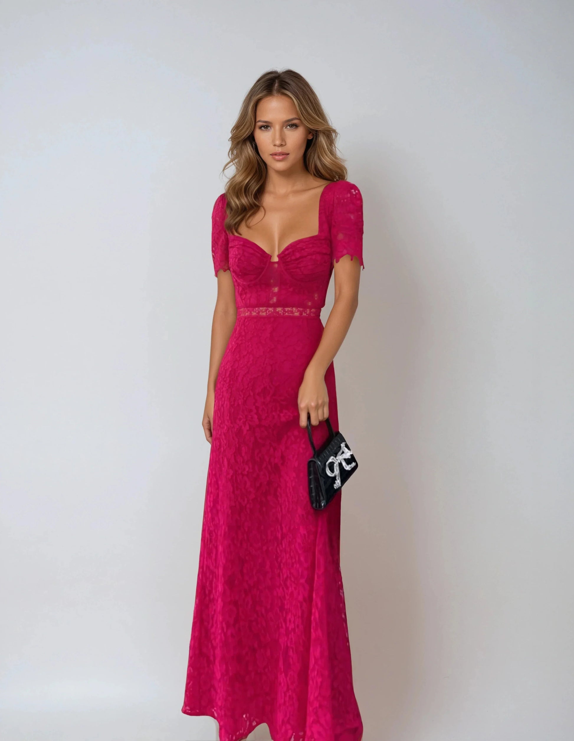 Şıklığı ve zarafeti aynı anda deneyimlemek isteyenler için tasarlandı. Kirpik dantel işçiliği, şık yan fermuarı ve iç astarıyla dikkat çeken bu kırmızı elbise, mükemmel bir görünüm sunar. Göğüs bölgesindeki balenli yapı ve yüksek bel tasarımıyla vücut hatlarınızı zarifçe vurgular, özel geceleriniz için tutku dolu ve unutulmaz bir seçim olacaktır.