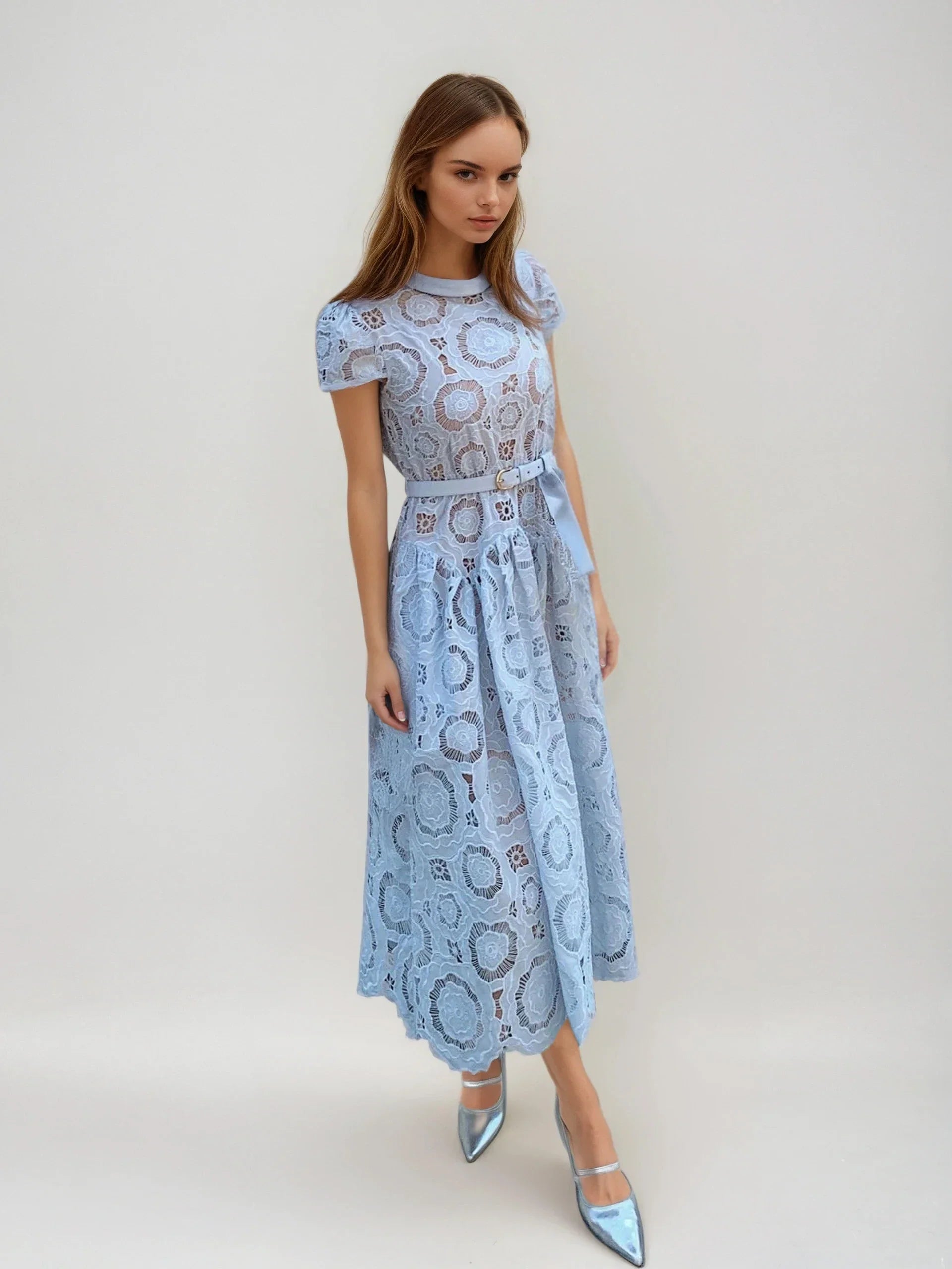 Açık Mavi Lazer Nakışlı Elbise