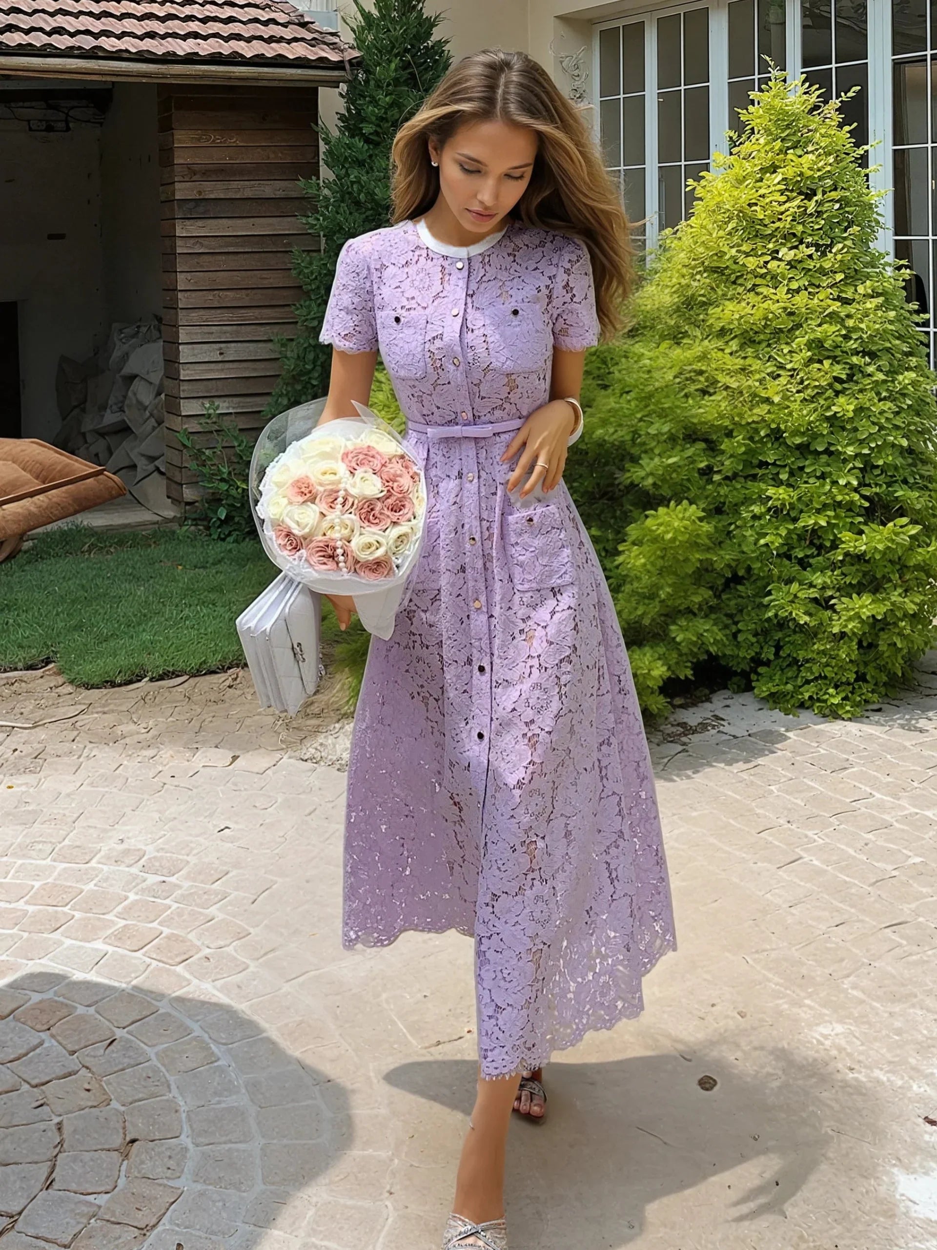 Mor Dantel Detaylı Elbise