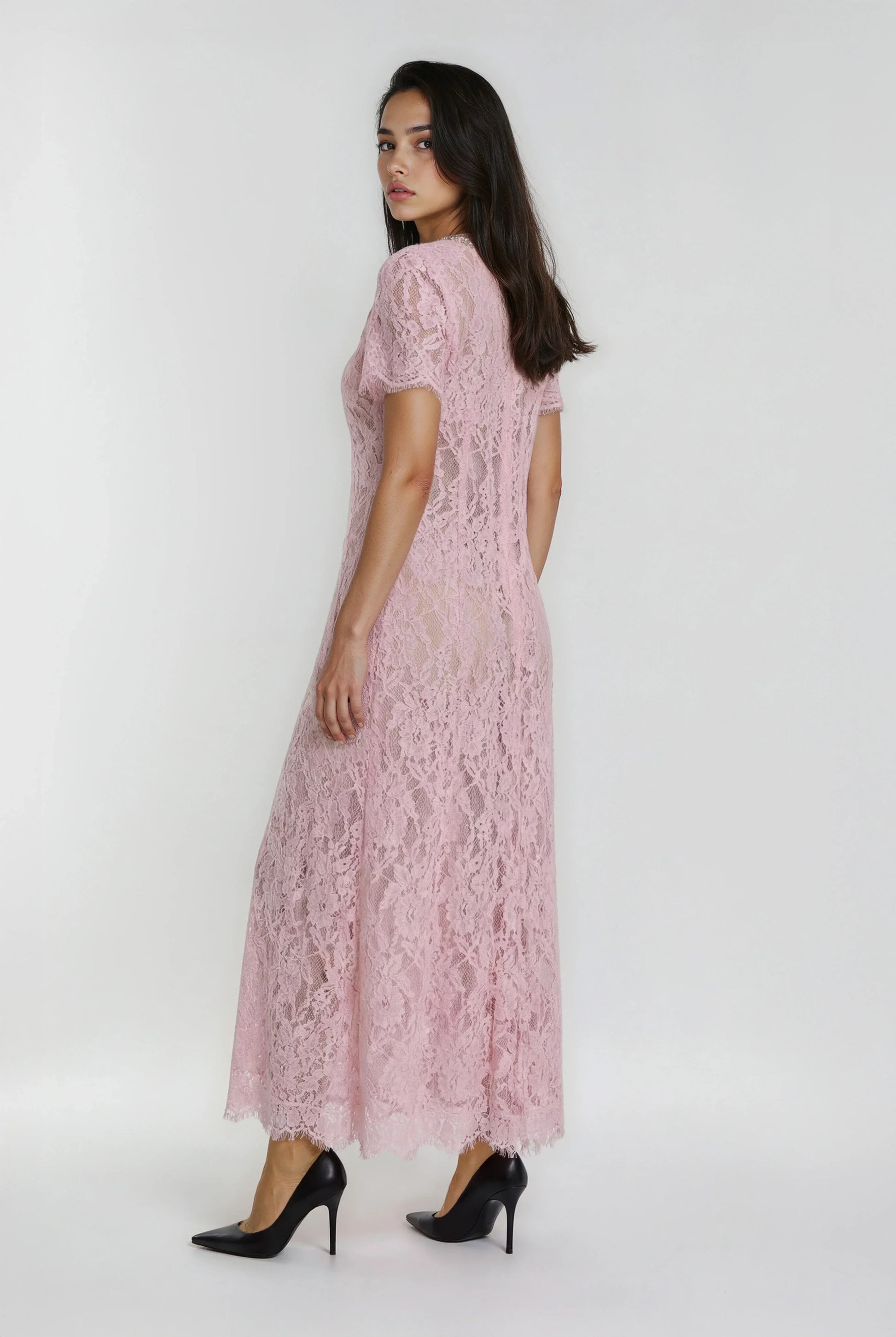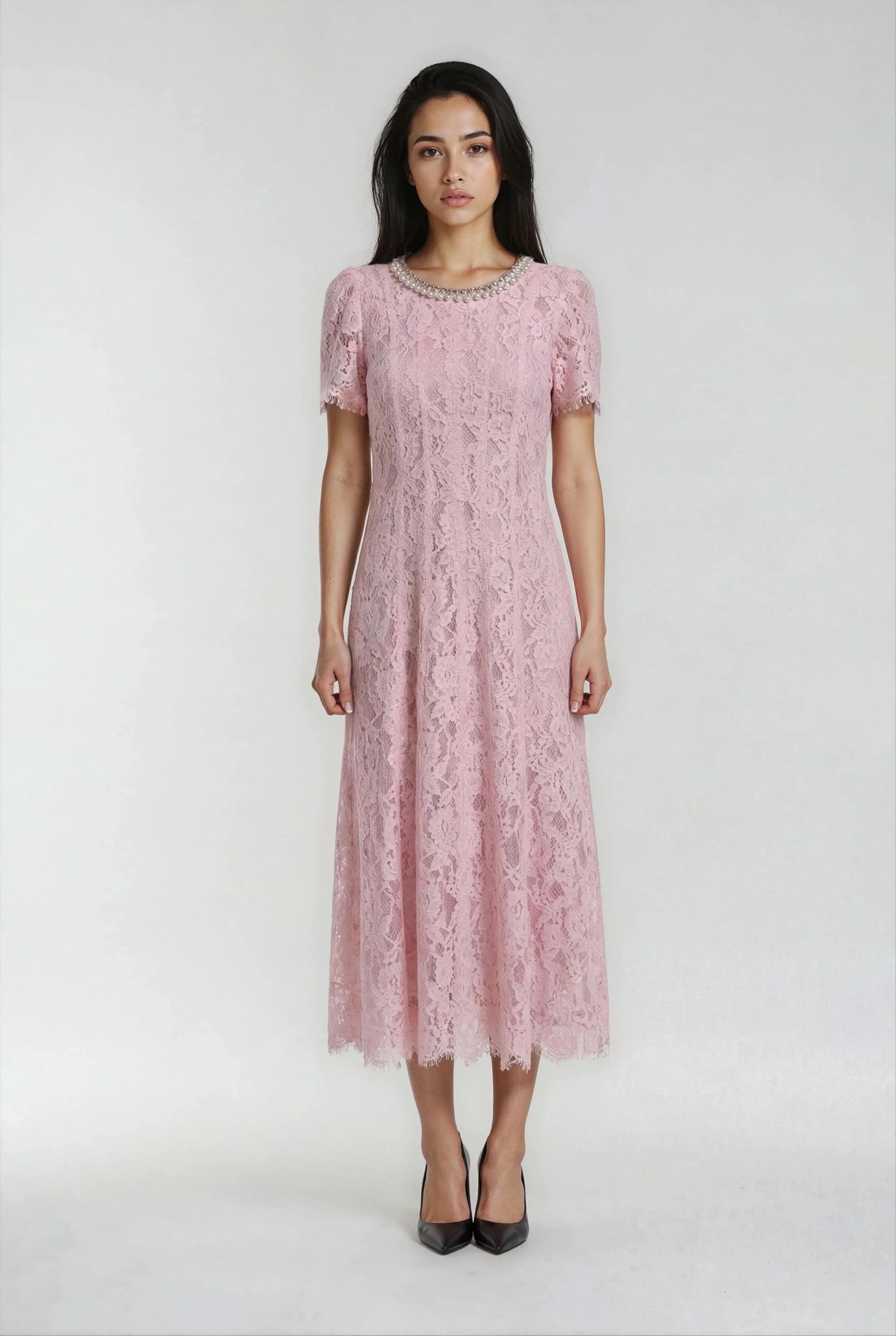 Romantik pembe rengi, kirpik dantel işçiliği ve ışıltılı payetleriyle büyüleyen bu elbise, zarafeti ve şıklığı bir arada sunuyor. Yüksek bel tasarımı ve göğüs desteğiyle şık bir görünüm vadeden model, askılı yapısı ve arka fermuarı ile kolay giyim sağlıyor. İç astarı konforu artırıyor.