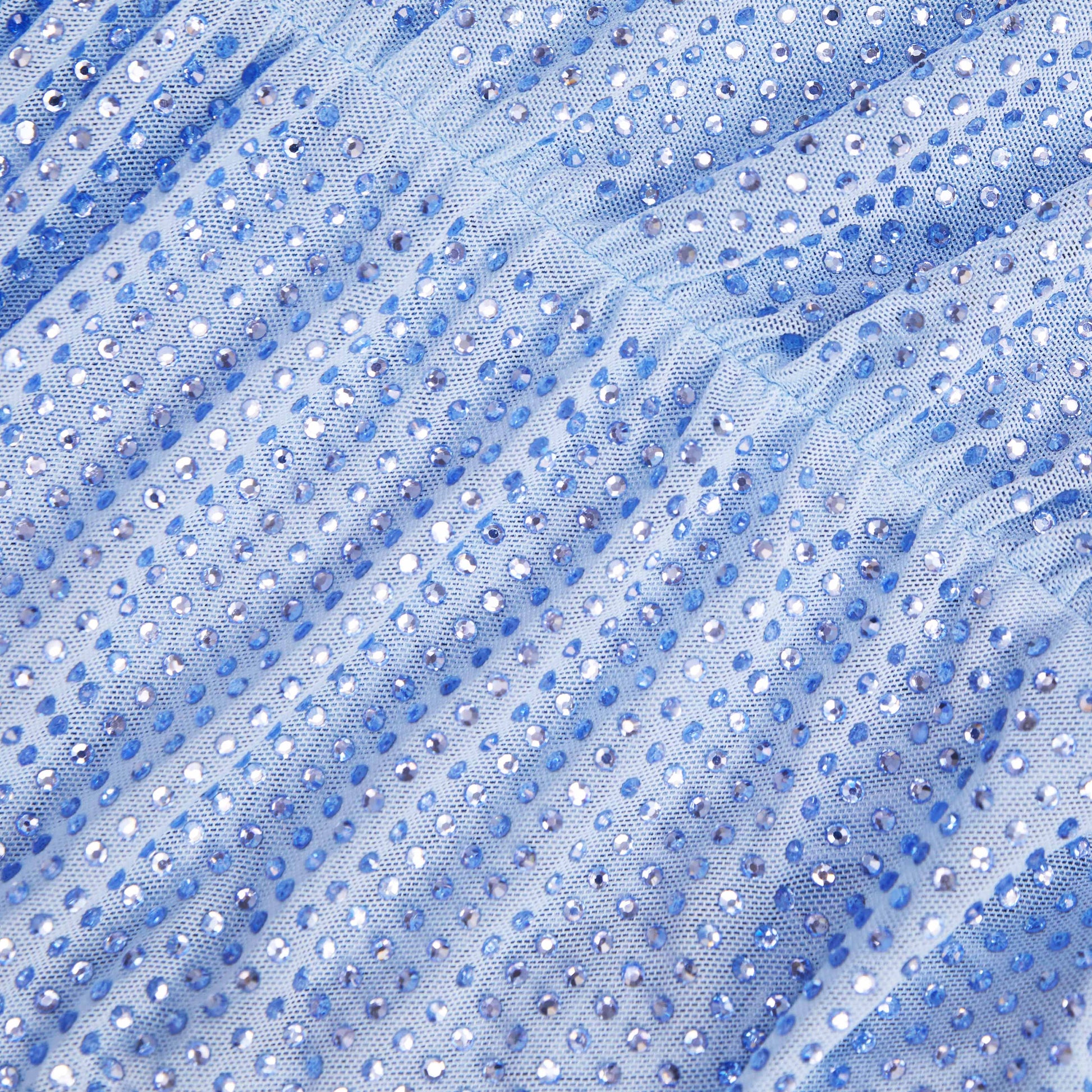 Mavi rhinestonelarla süslenmiş ağ ile kaplı bu dikkat çekici üst, şık bir bluzon tasarımına sahiptir ve belden oturur. Gece dans pistinde giymek için kot pantolon veya mini eteğin içine sokun.