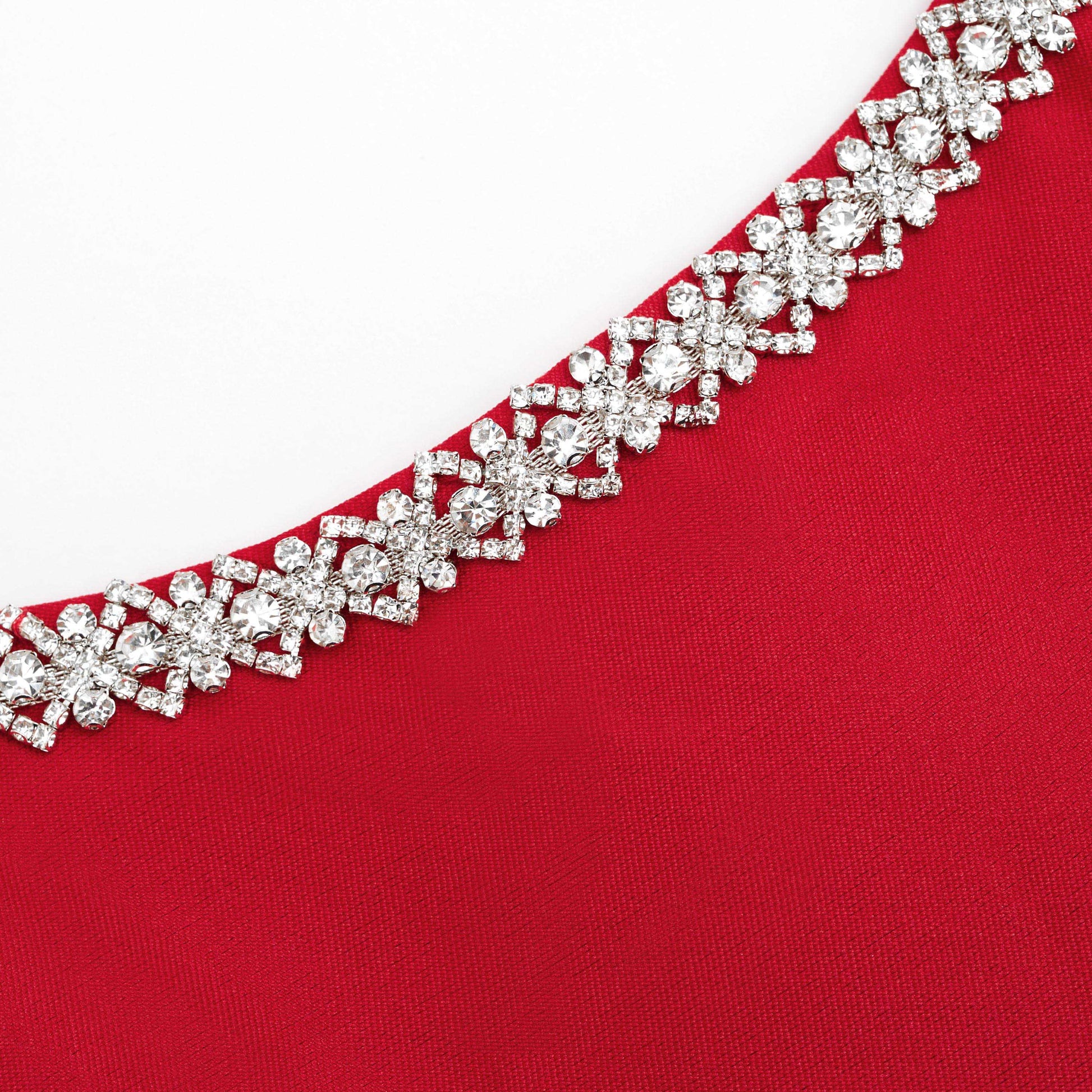 Kırmızı Tafta Pırlanta Midi Elbise