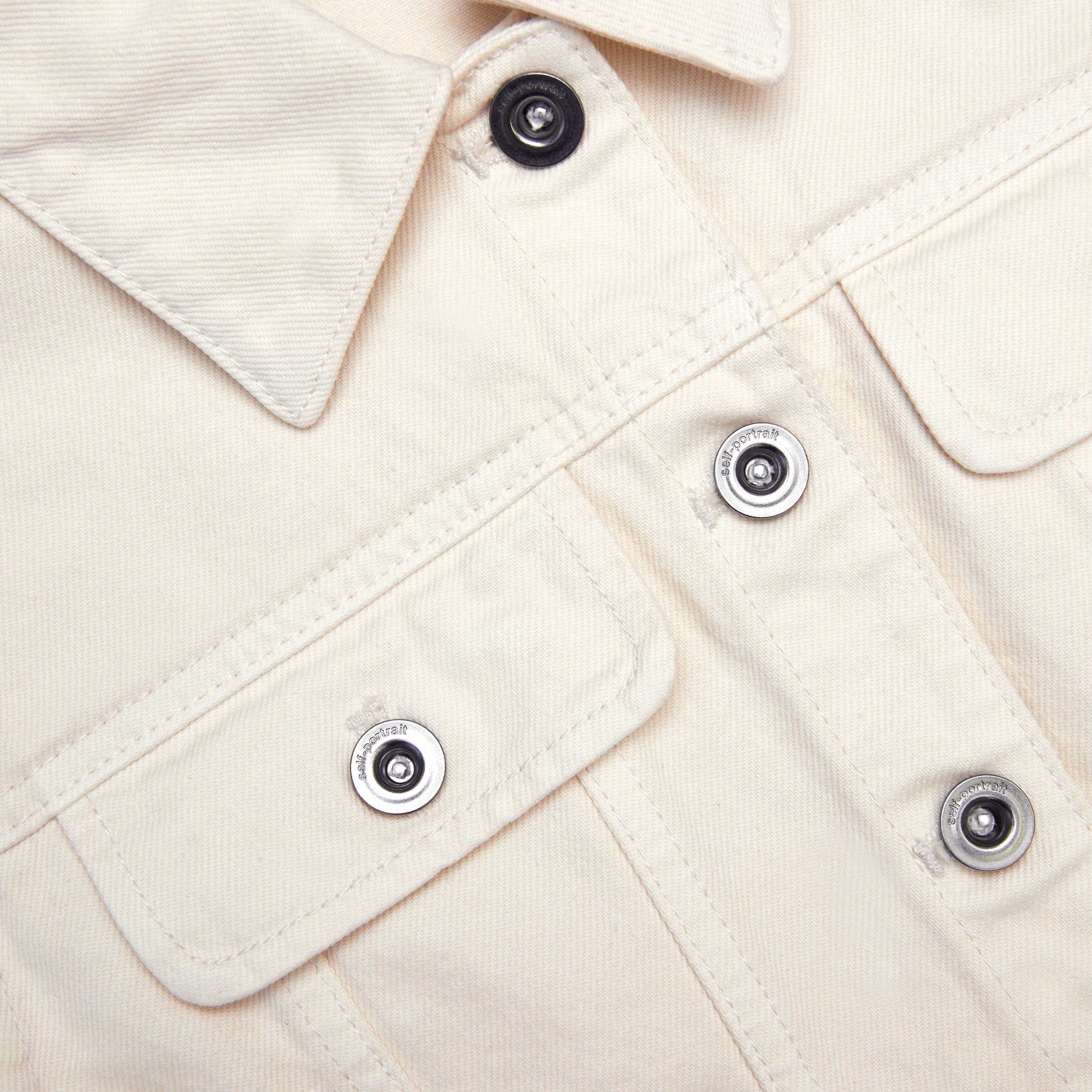 Her görünüme havalı kız tavrını enjekte edin bu kolsuz krem denim üst ile. Kurşuni düğmeler ve yırtık etek ucu sokak stiline hazır detaylar ekler – kesik boyunu kot pantolon ve mini eteklerle eşleştirin.