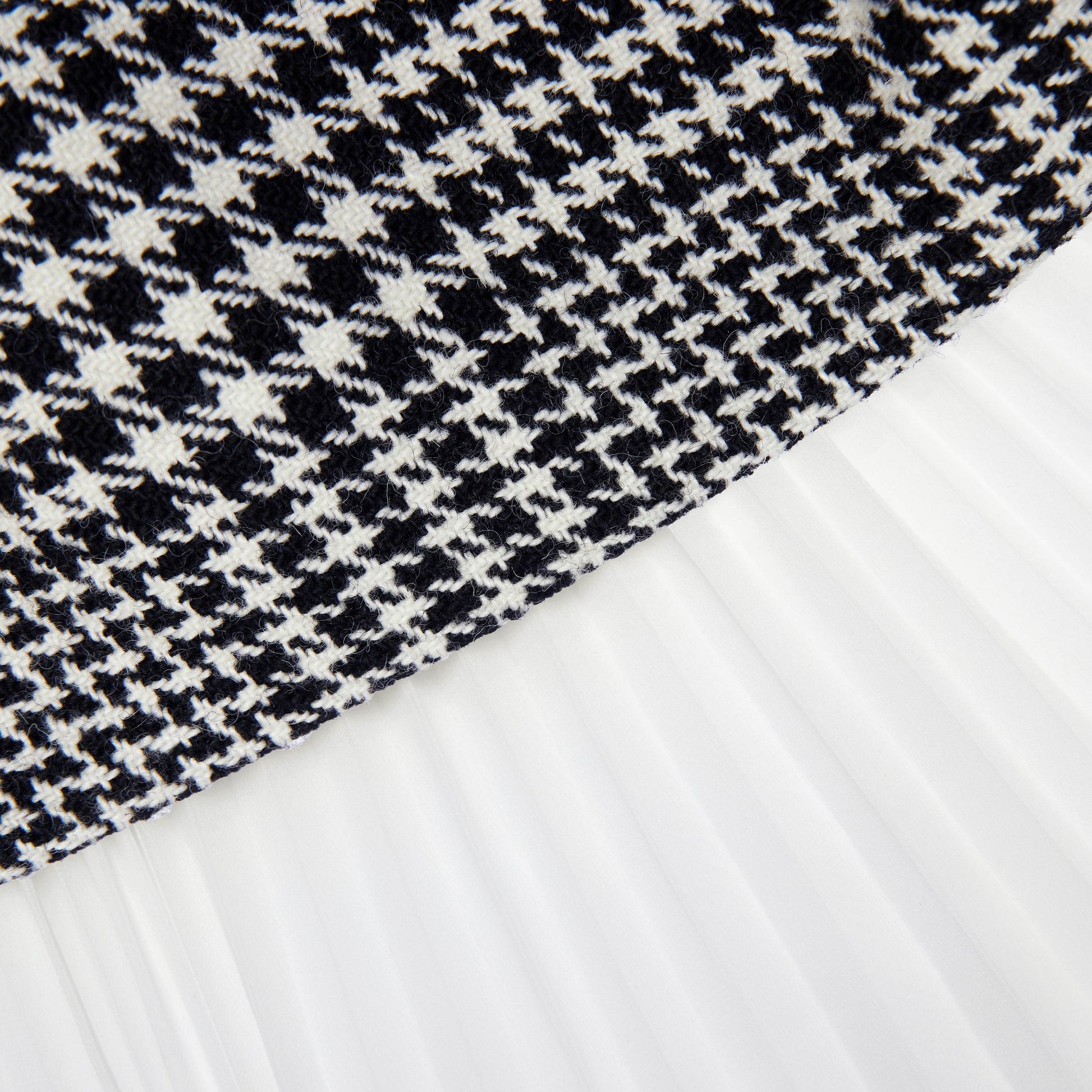 Klasik terzilik, tazı dişi yün ekoseli kumaştan kesilmiş bu mini elbise ile zamansız şıklıkla buluşuyor. Kemerli bel, pilili eteğin üzerinde formu vurgular – masadan akşama geçmek için topuklu ayakkabı ekleyin.