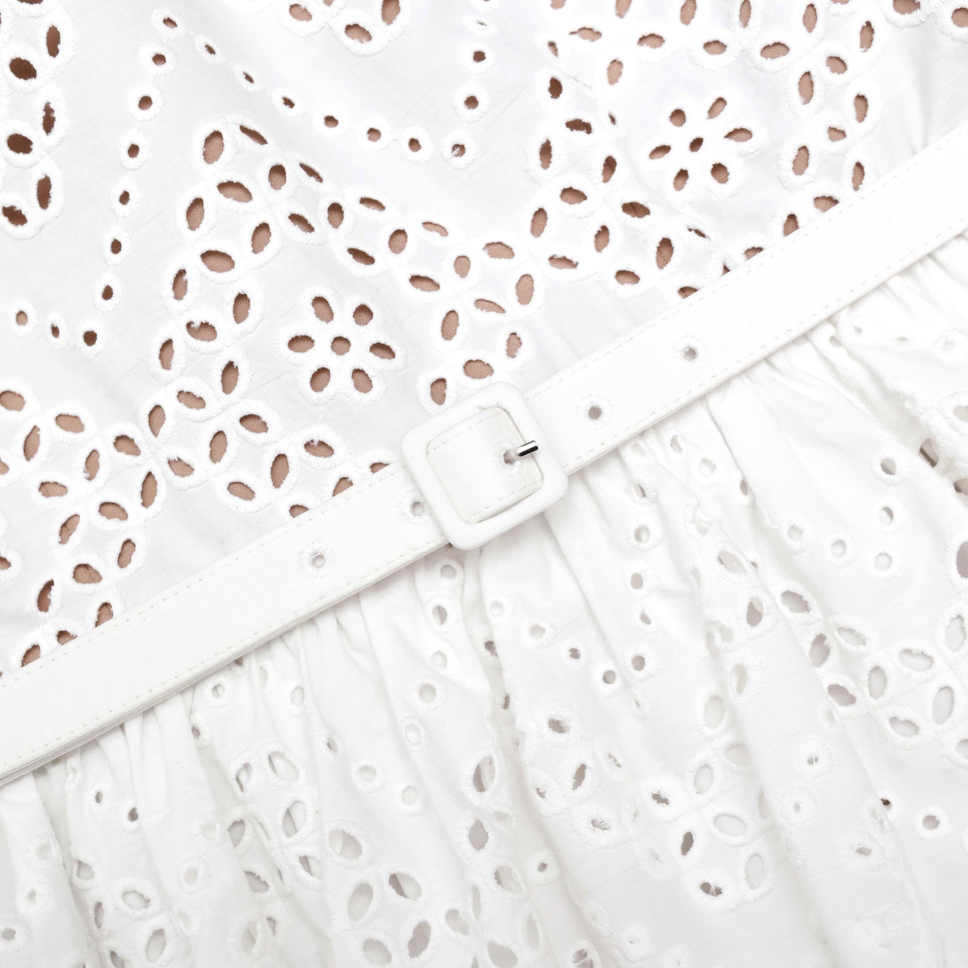 Beyaz Pamuklu Broderie Mini Elbise