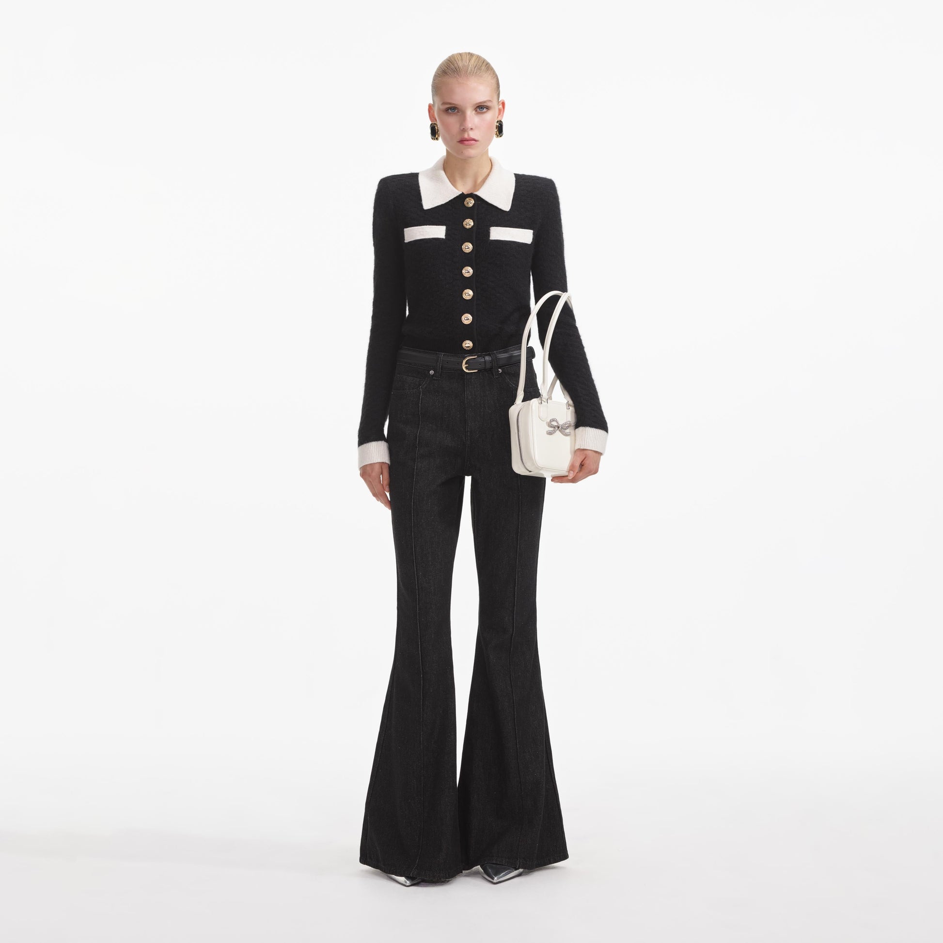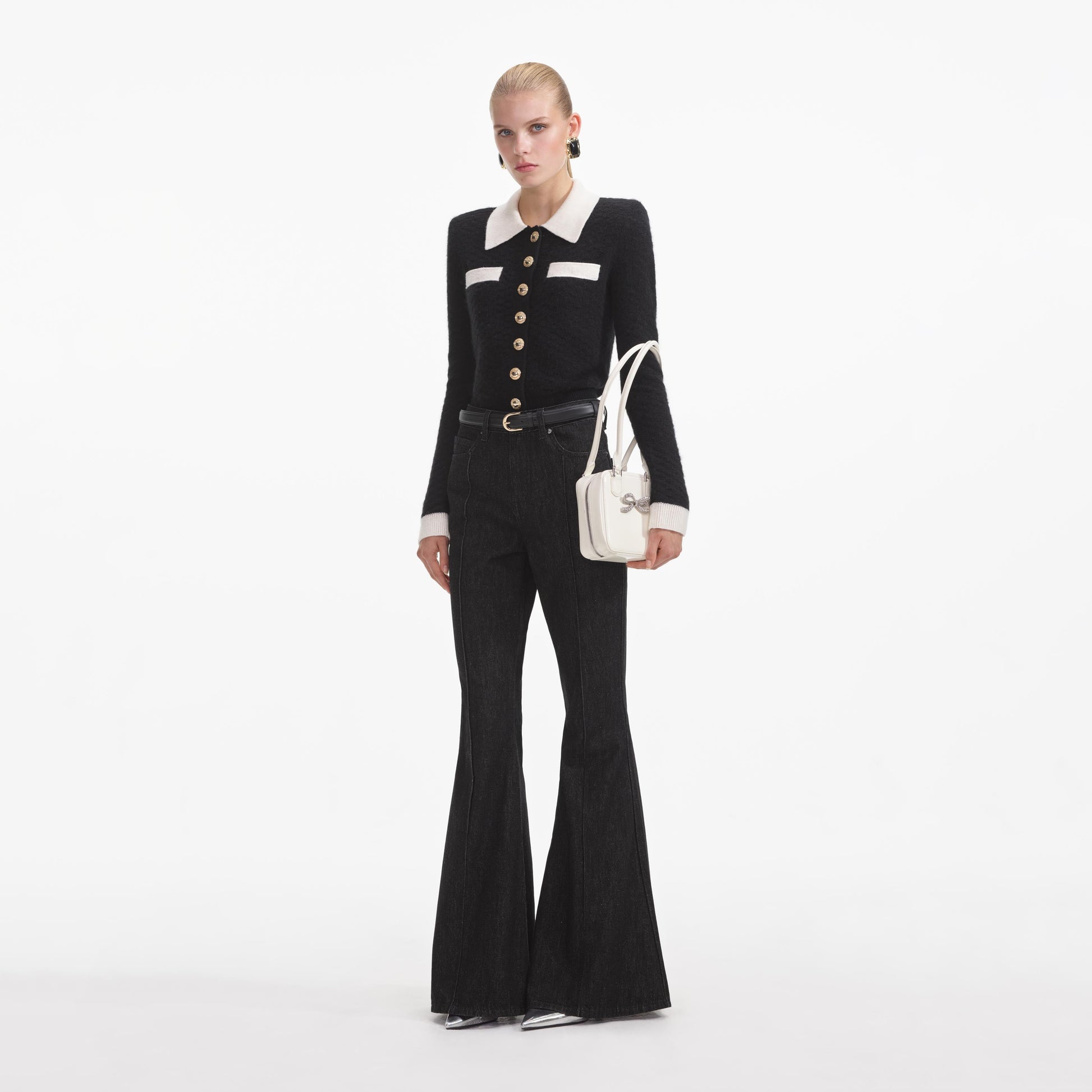 Temiz çizgiler ve yüksek kontrastlı bir palet bu hırkaya şık bir hava katıyor. Kısa kesim, yüksek bel altlarla kolayca eşleşir – gündüz için kot ve babet, gece için ise parlak bir mini tercih edin.