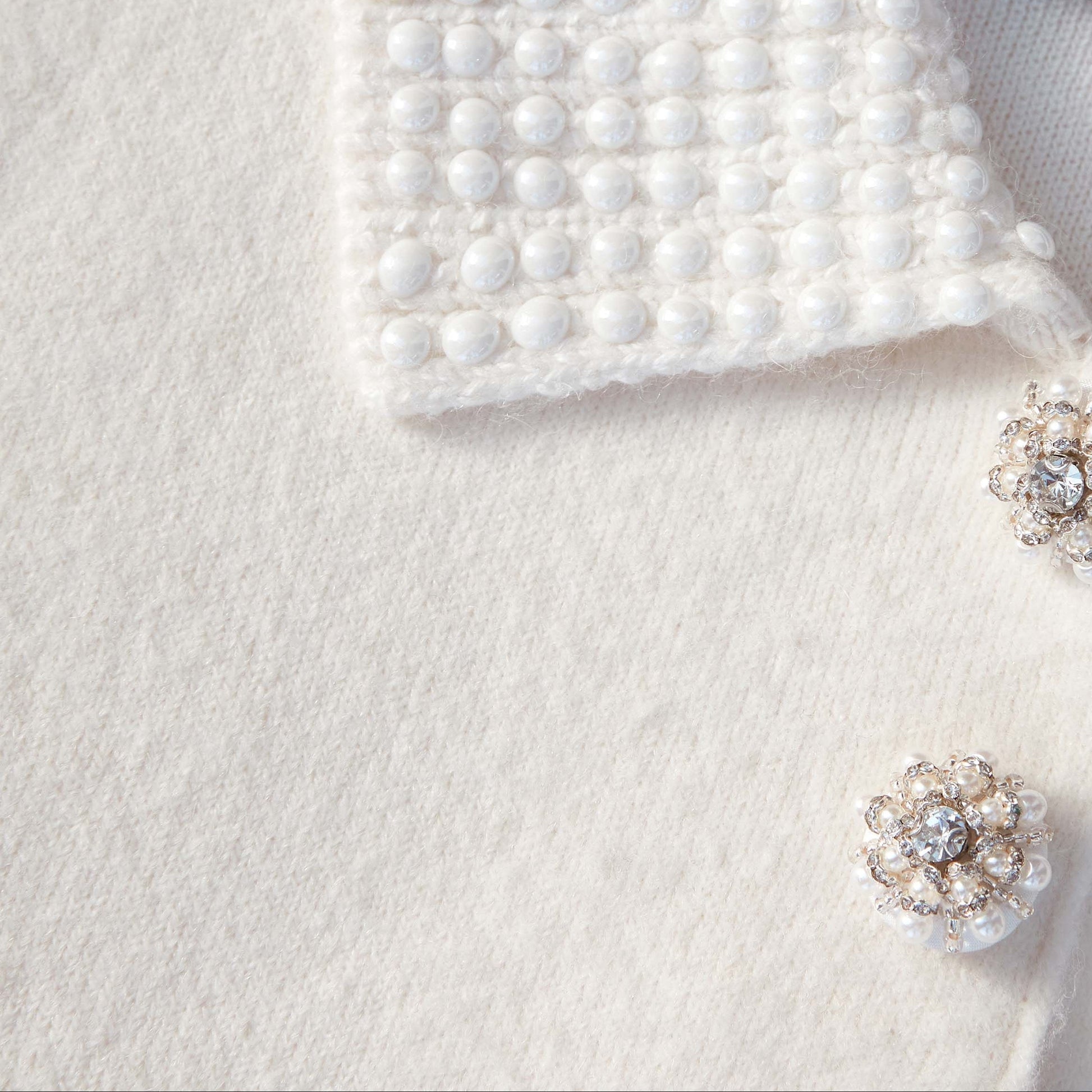 Krem İnci Yaka Alpaka Örgü Üst