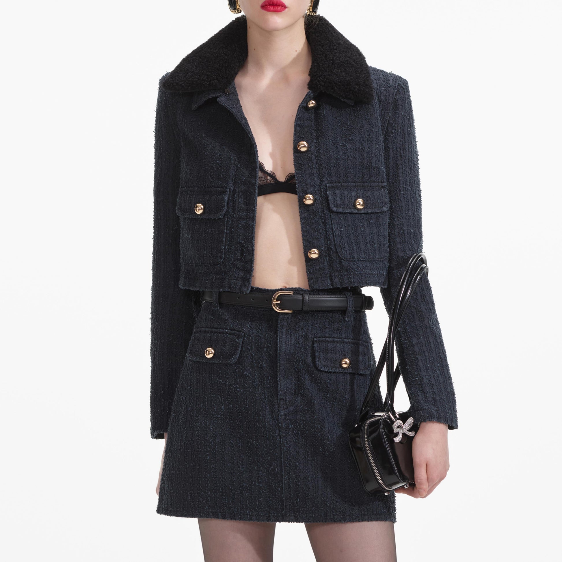 Fonsiyonellik, bu gri ceketle şehir şıklığıyla buluşuyor; imza dokulu denimimizden kesildi. Bunu açık renk yıkamalı kotlarla stilize edin veya Texas smokini için feminen bir dokunuş olarak uyumlu mini etekle eşleştirin.