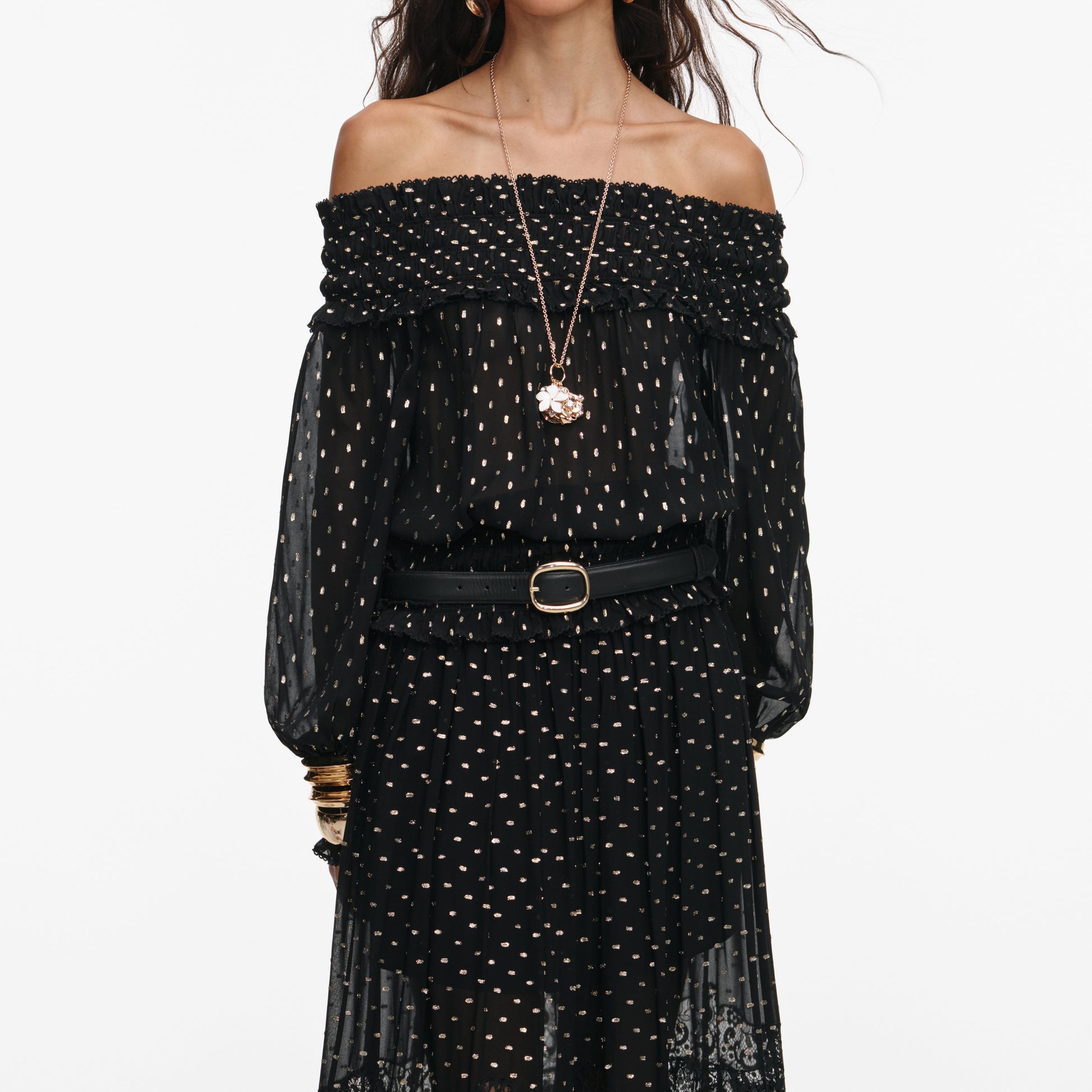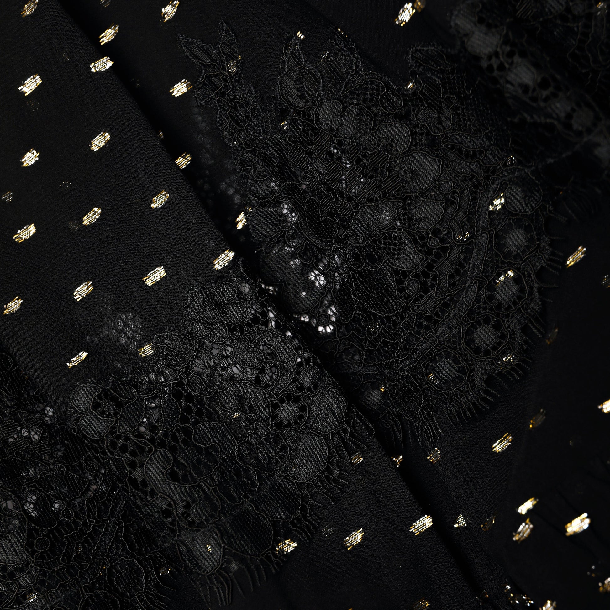 Siyah Ve Altın Şifon Dantel Uzun Etek
