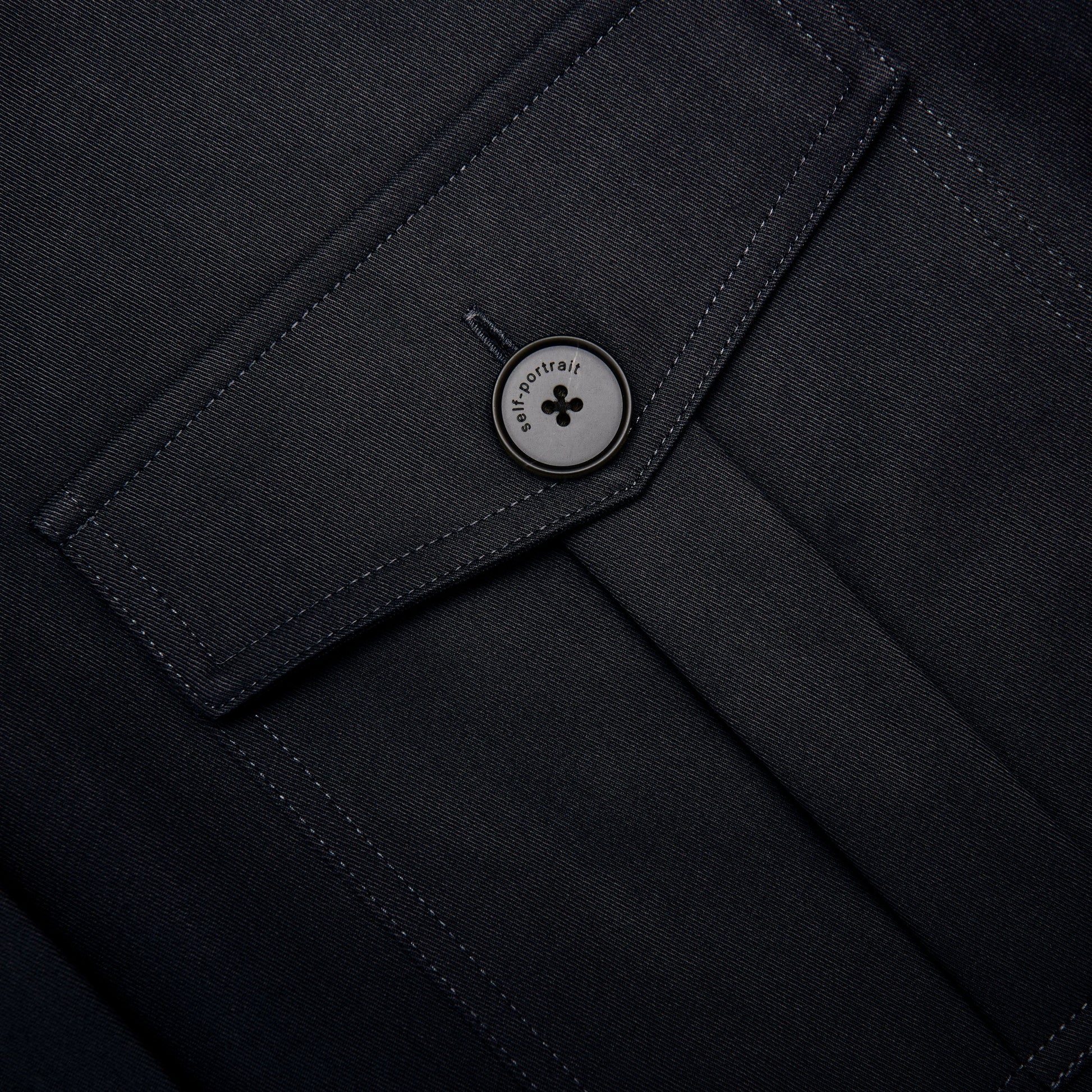 Askeri esintili detaylara sahip bu siyah pamuk gabardin gömlekle şık bir forma bürünün. Sökülebilir omuz pedleri güçlü bir siluet yaratır – mikro mini ile kombinleyip şehri fethedin.