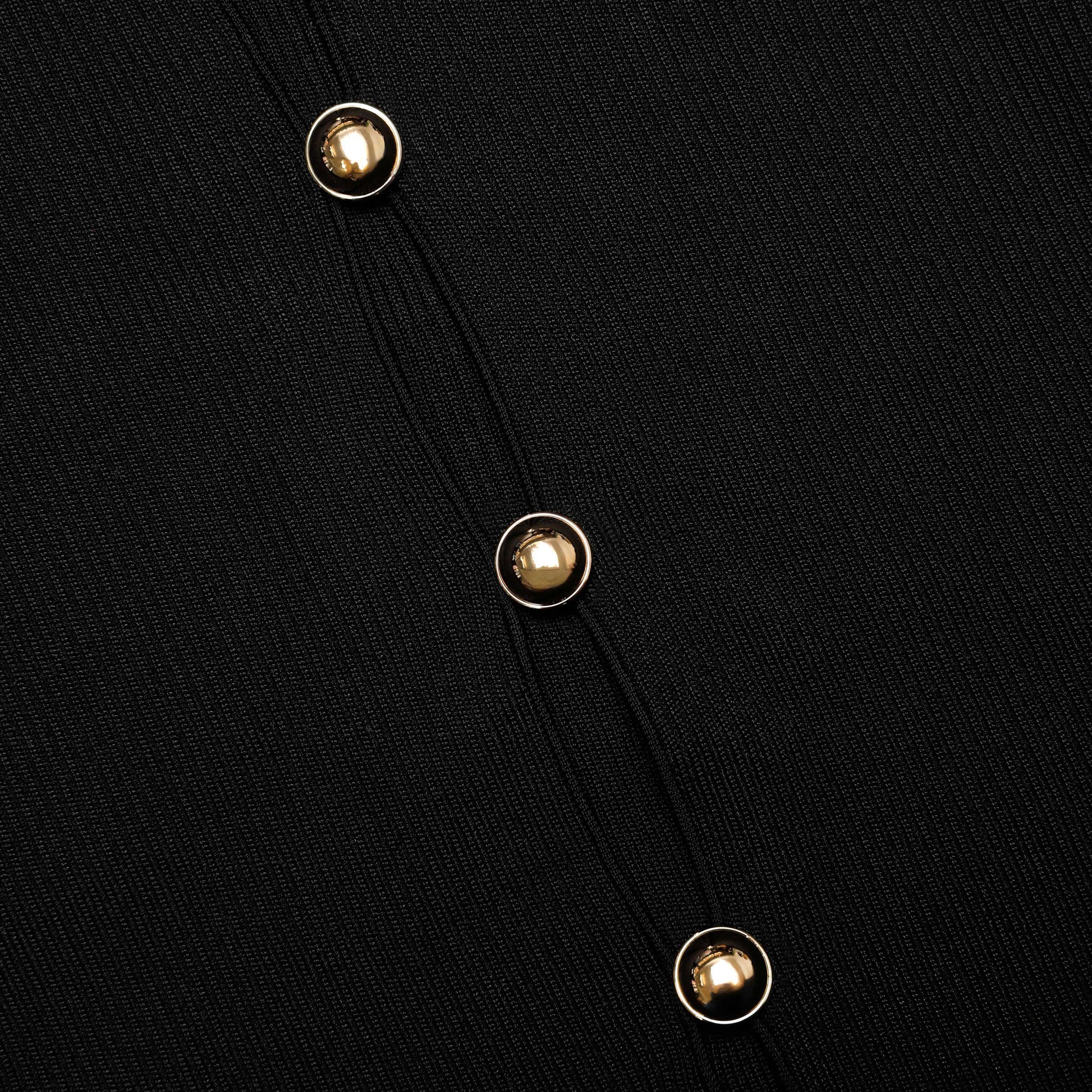 Ustalıklı kontrastların dersi, yumuşak örme kumaş bu siyah midi elbisede taffetanın yapılandırılmış parlaklığıyla buluşuyor. Cesur ön yaka kesimleri dikkat çekici detaylar katıyor – sadece davetli olduğunuz özel etkinliklerde topuklularla kombinleyin.