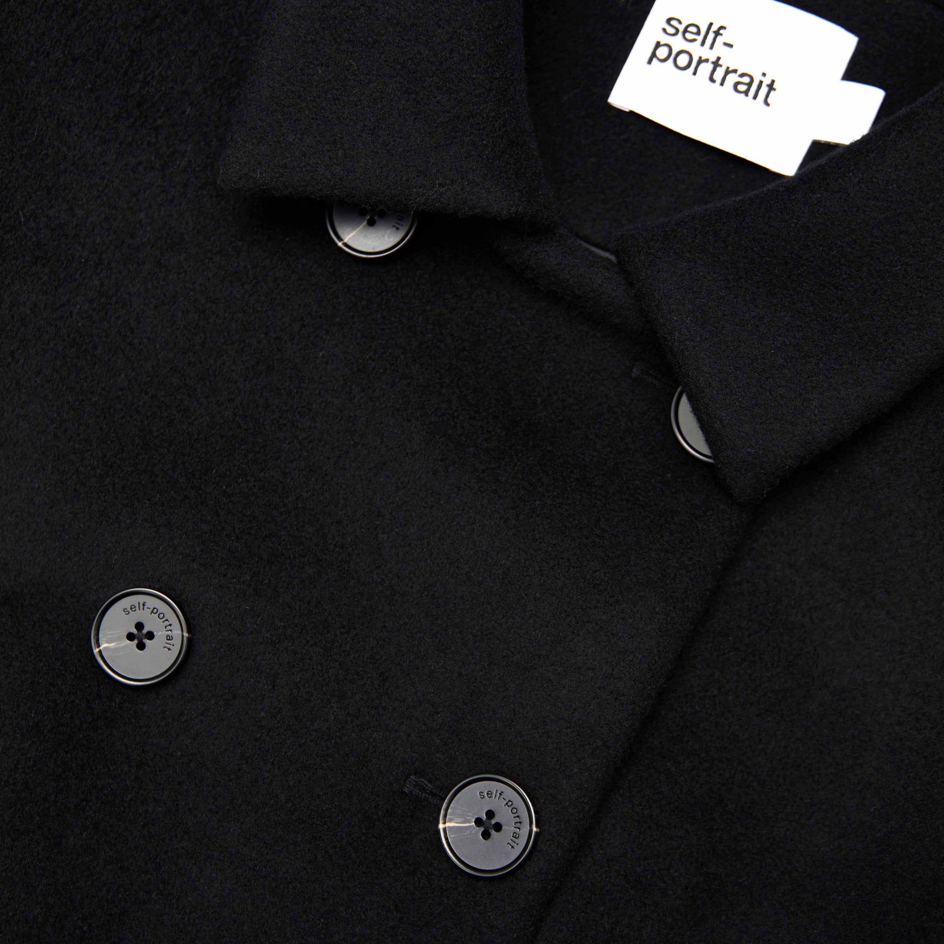 Mükemmel uyumlu, bu çift düğmeli siyah yün ceket zamansız terziliği tanımlıyor. Güçlü omuzlu siluetini gündüzleri kot pantolonla eşleştirin ve şık bir akşam görünümü için küçük siyah elbisenizin üzerine kat kat giyin.