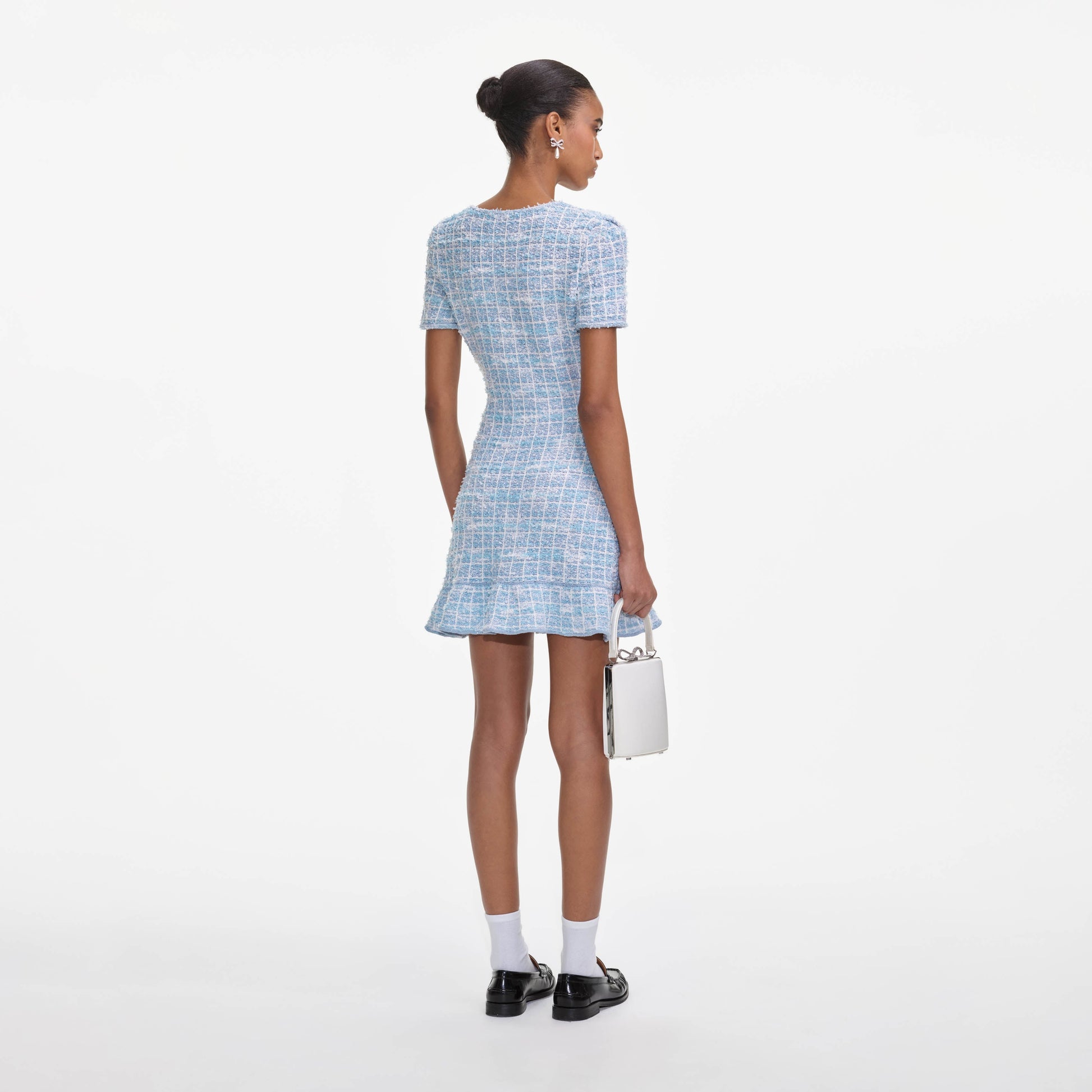 Mavi Kareli Örme Mini Elbise