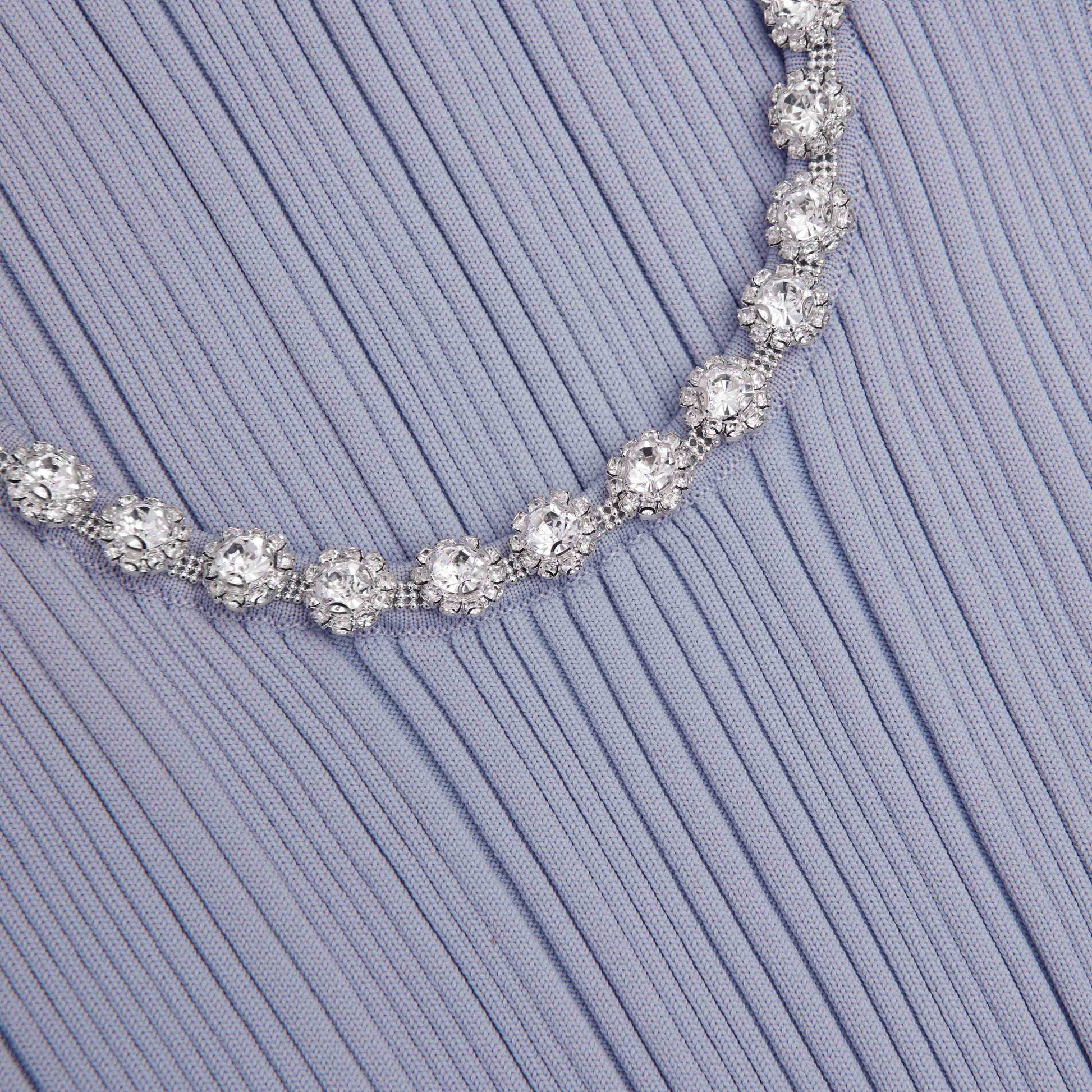 Mavi Ribanalı Örme Pırlanta Midi Elbise
