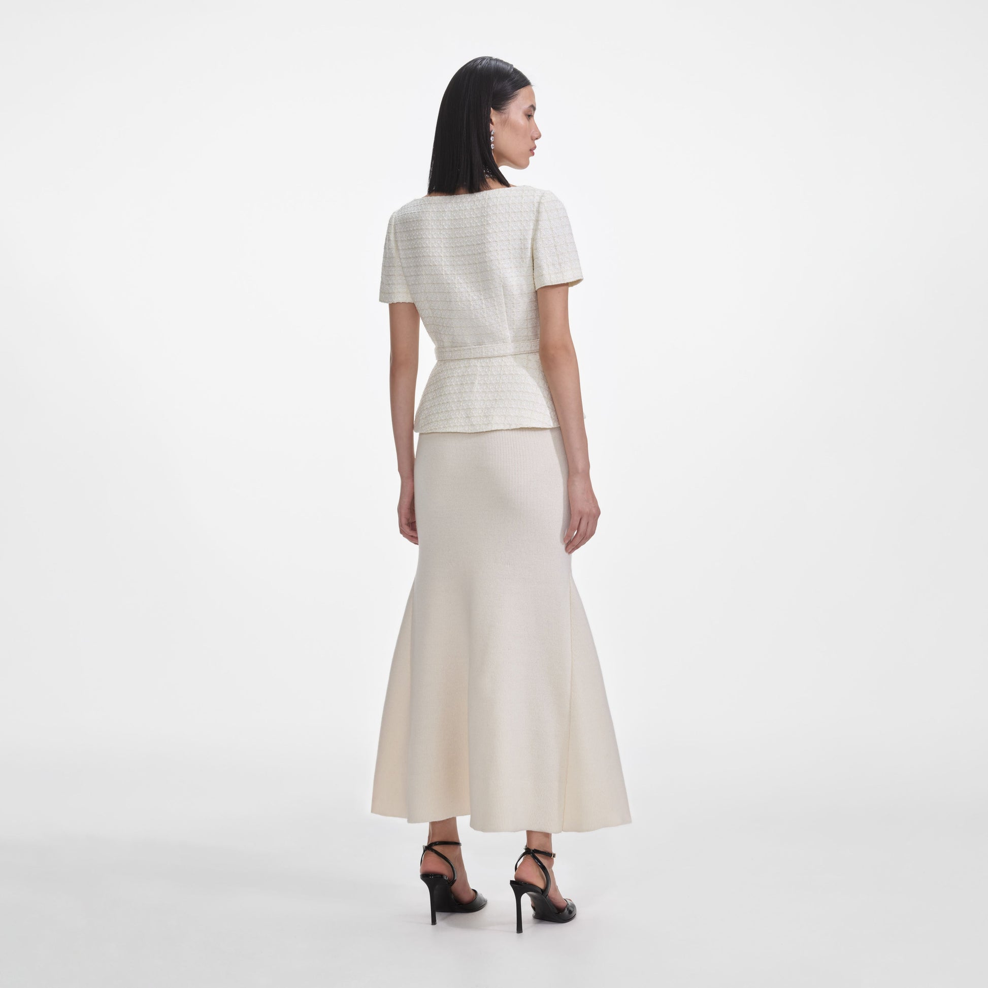 Yumuşak ama şekillendirilmiş bir uyum için waffle örgü kumaştan kesilmiş olan bu üst, inci süslemeleri ve kontrast kenarlıklarıyla hem iş hem de oyun için mükemmel bir tercih. Şık bir masa başı ve akşam görünümü için brogue ayakkabılarla kombinleyin.