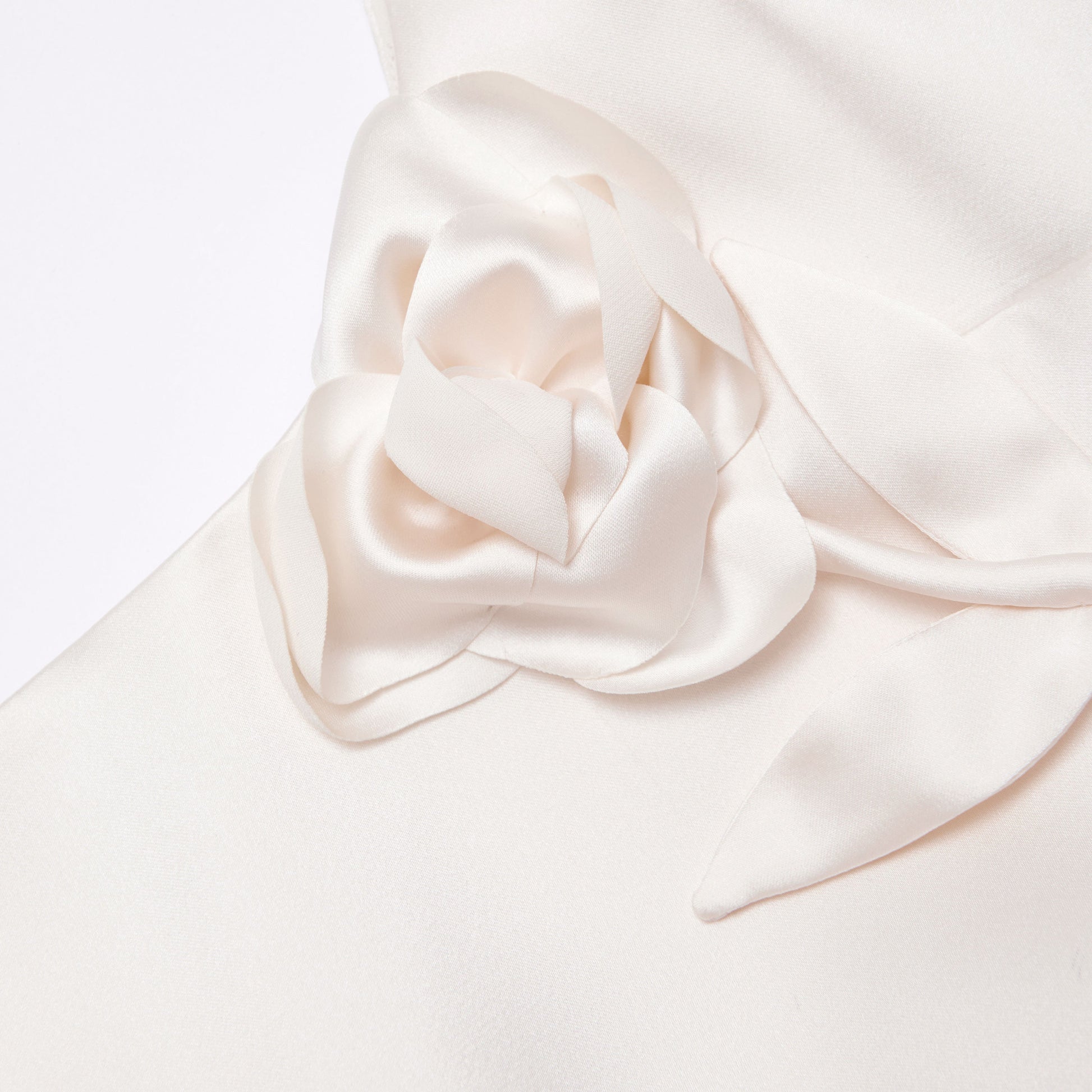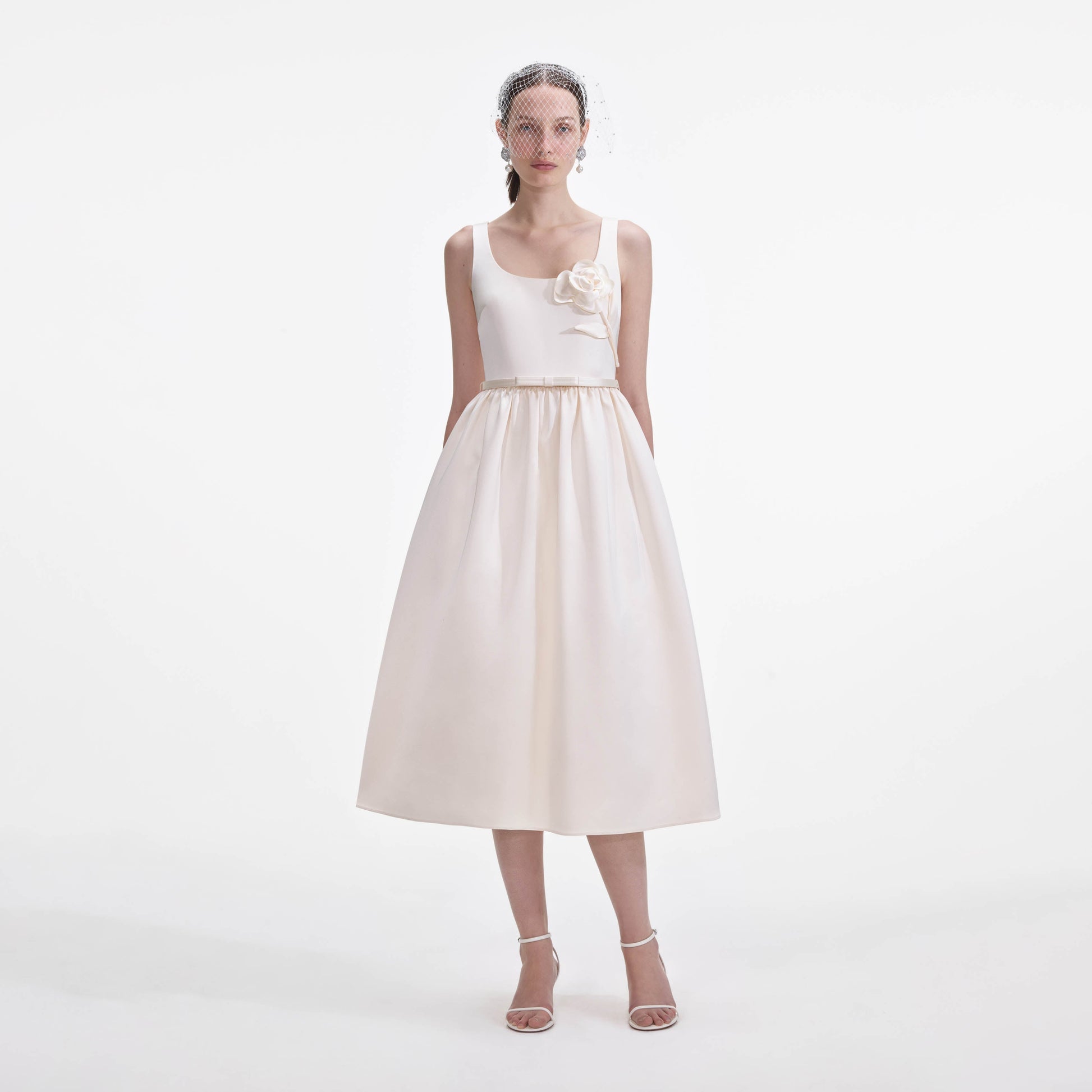 Krem Saten Çiçekli Midi Elbise