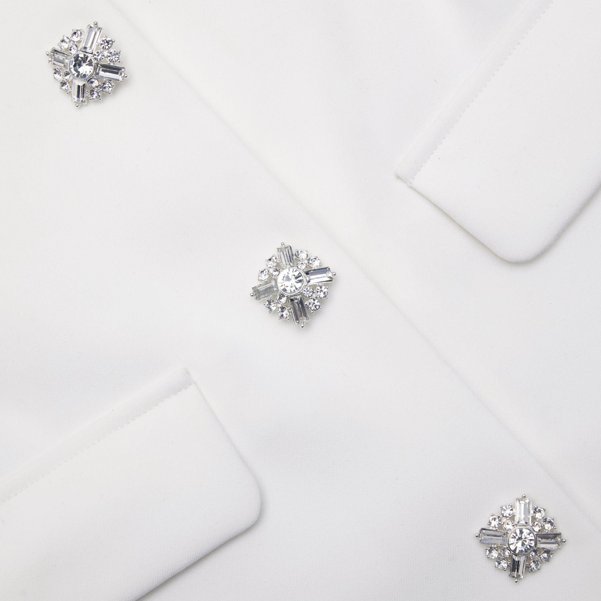 Beyaz Krep Pırlantalı Mini Elbise