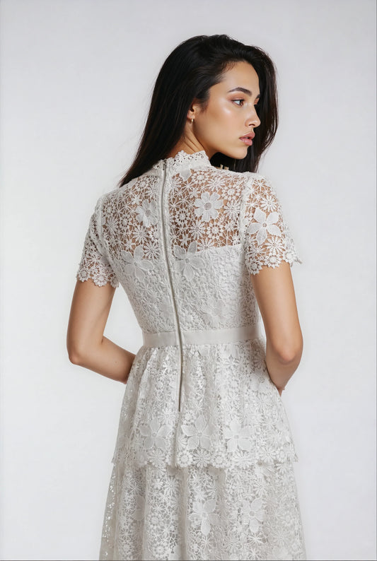 30% İndirimAğır Dantel Süslemeli Beyaz Elbise